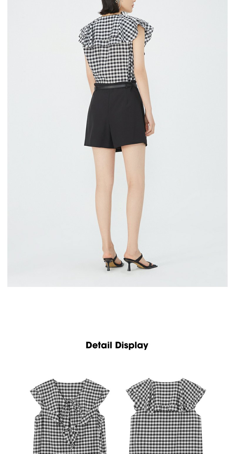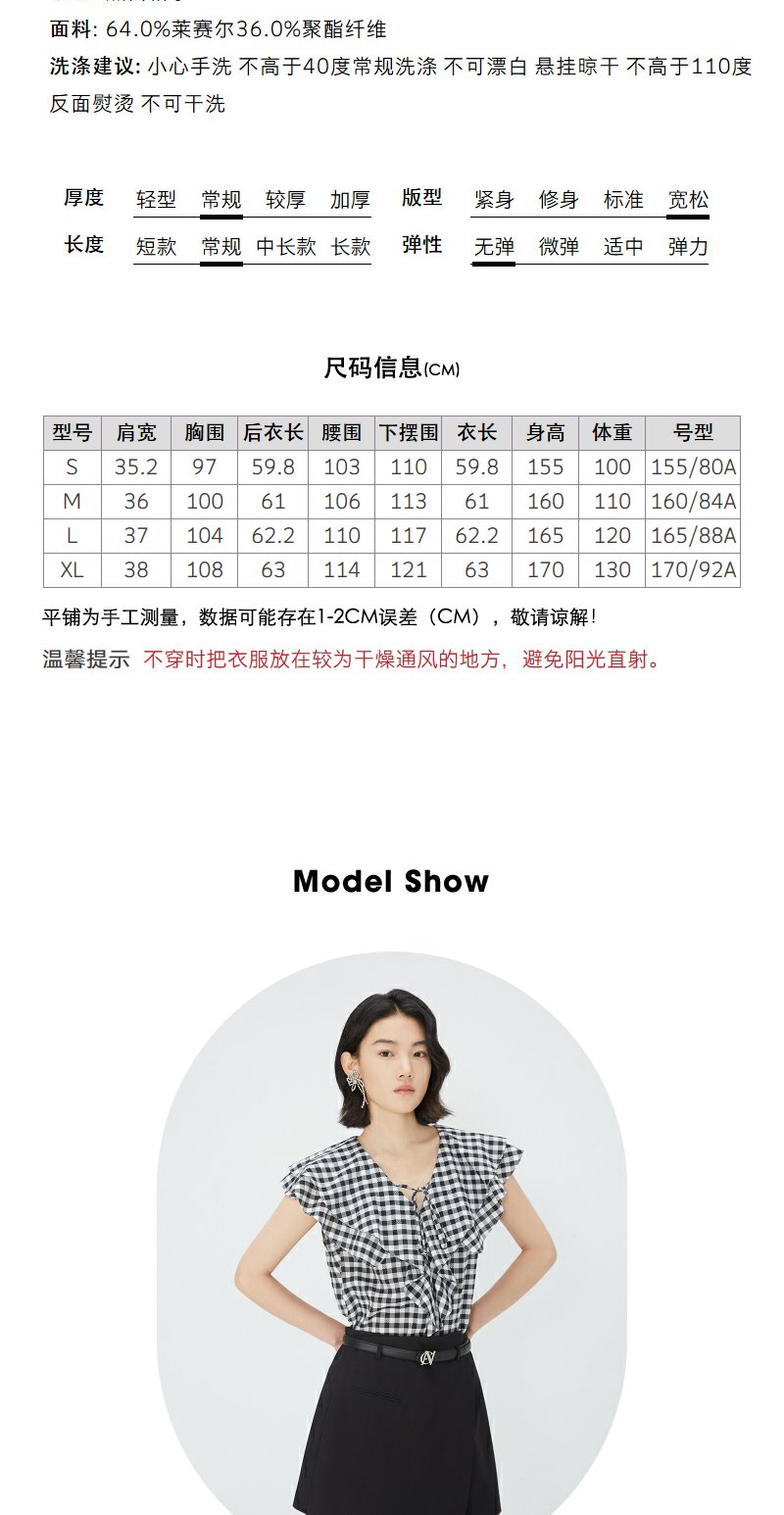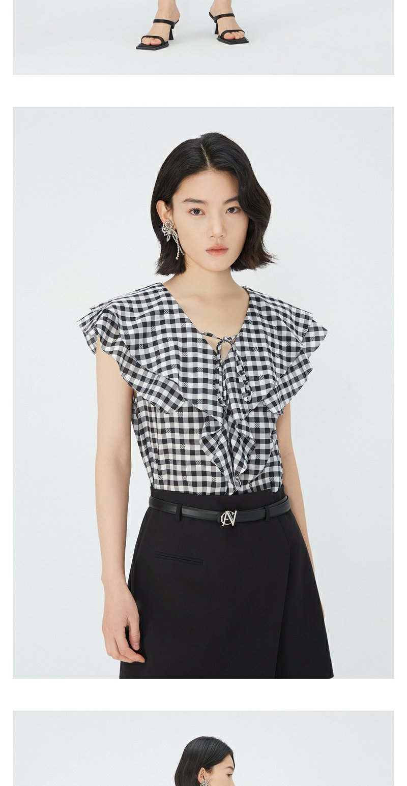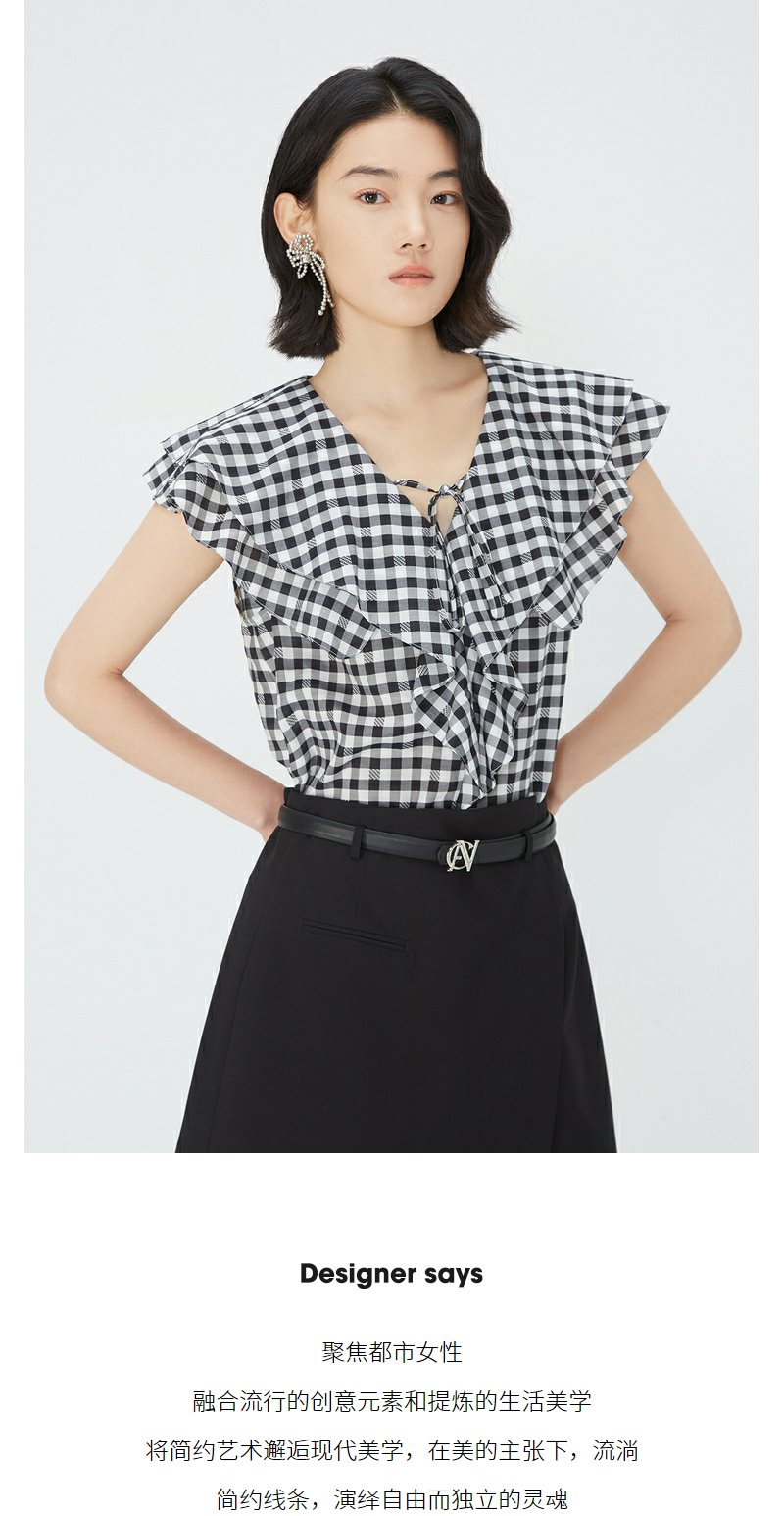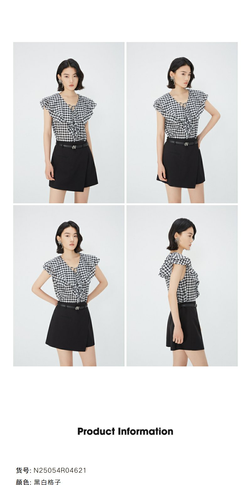 NEELLY纳俪商场同款夏新款V领荷叶边无袖衬衫女通勤经典时尚上衣N25054R04621