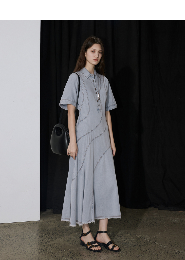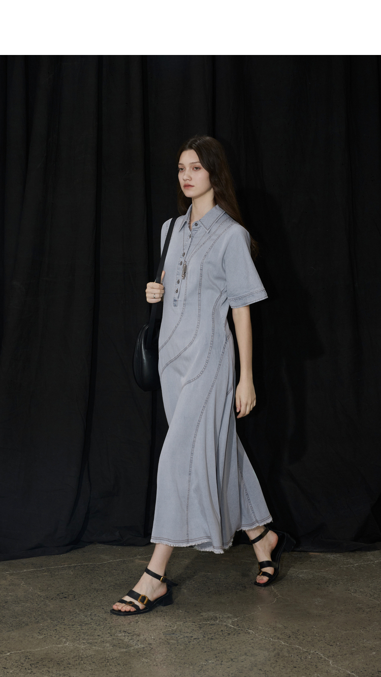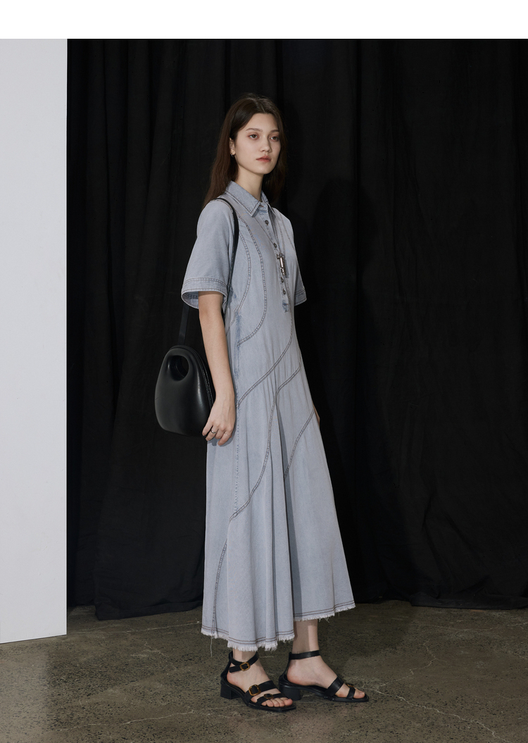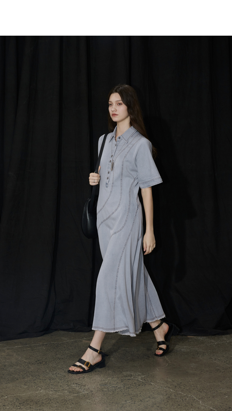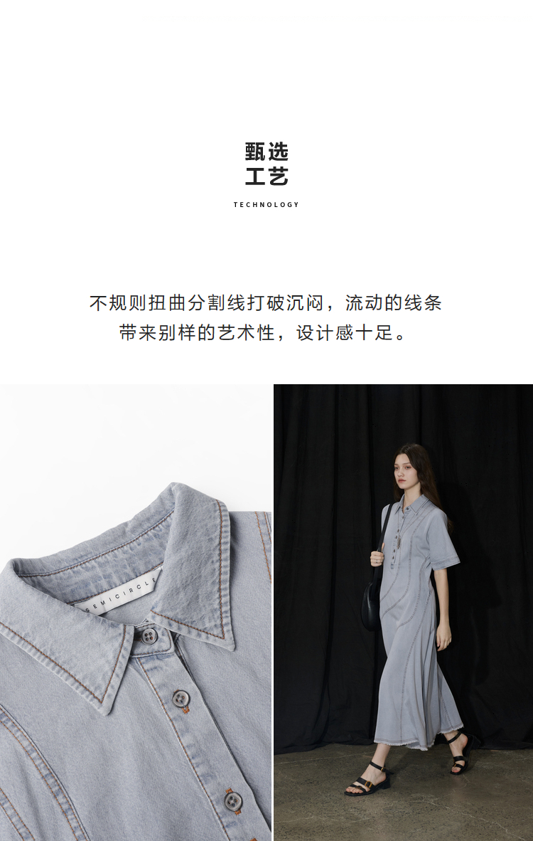 半圆/D24201360/不规则天丝牛仔连衣裙
