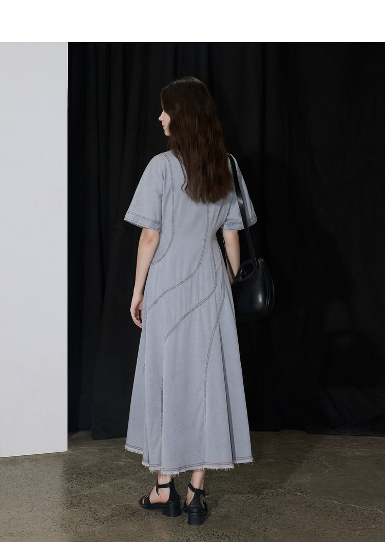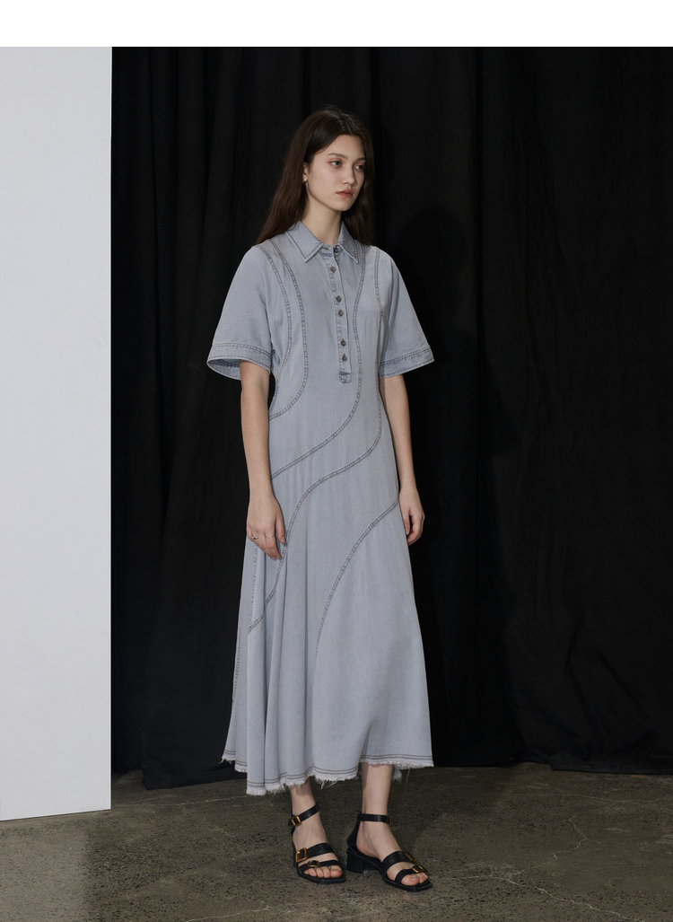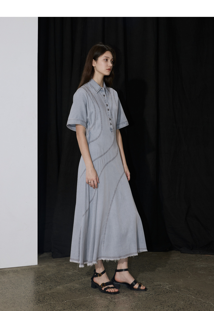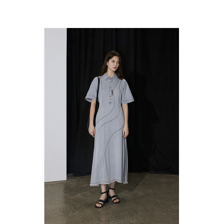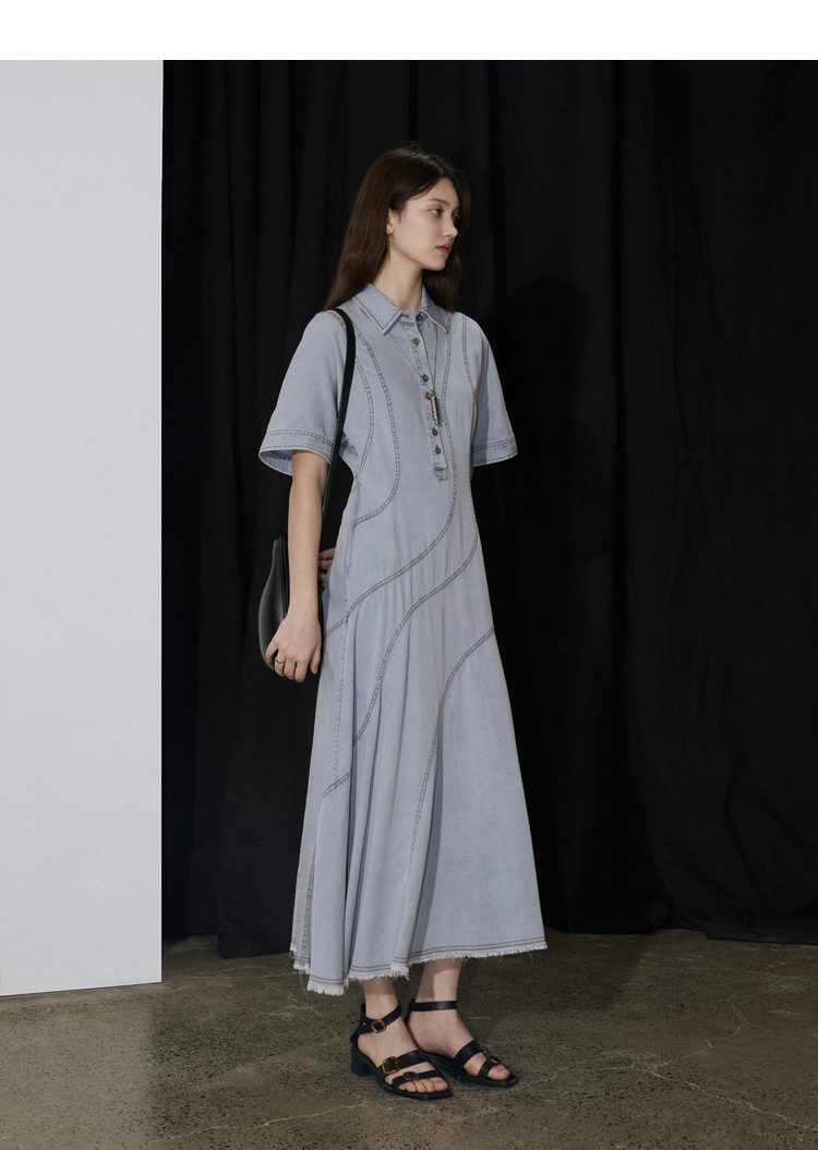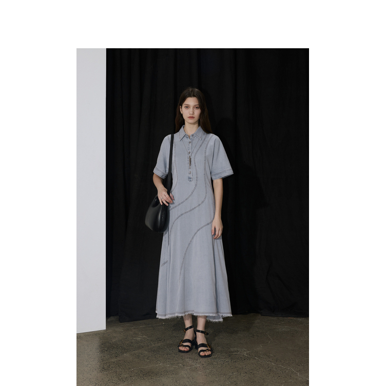 半圆/D24201360/不规则天丝牛仔连衣裙