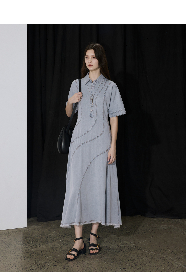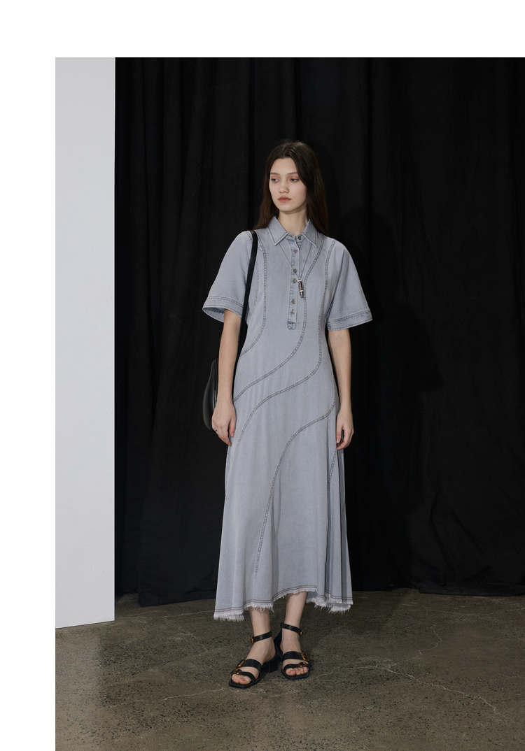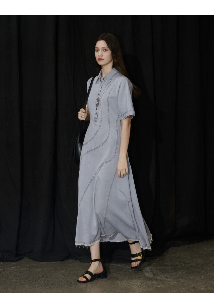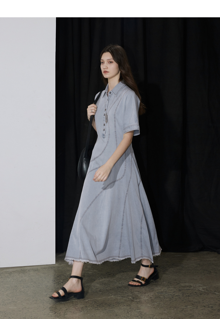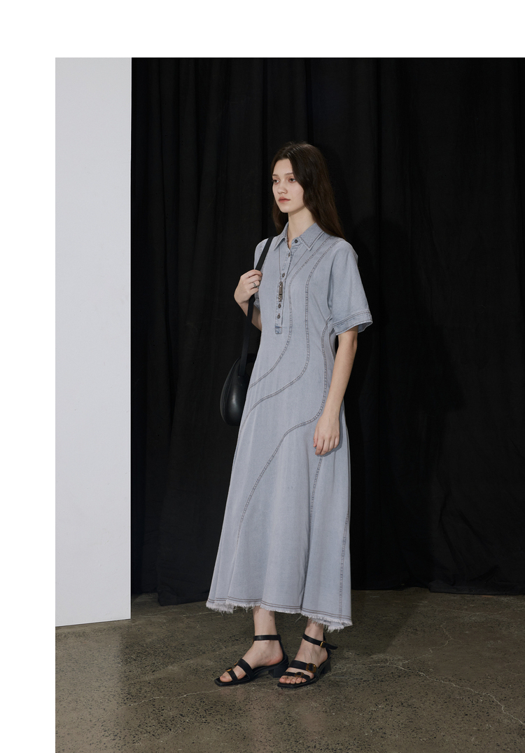 半圆/D24201360/不规则天丝牛仔连衣裙