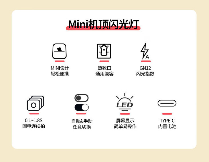 捷宝TR100迷你mini通用机顶闪光灯微单数码胶片相机外置机顶通用热靴灯闪光灯