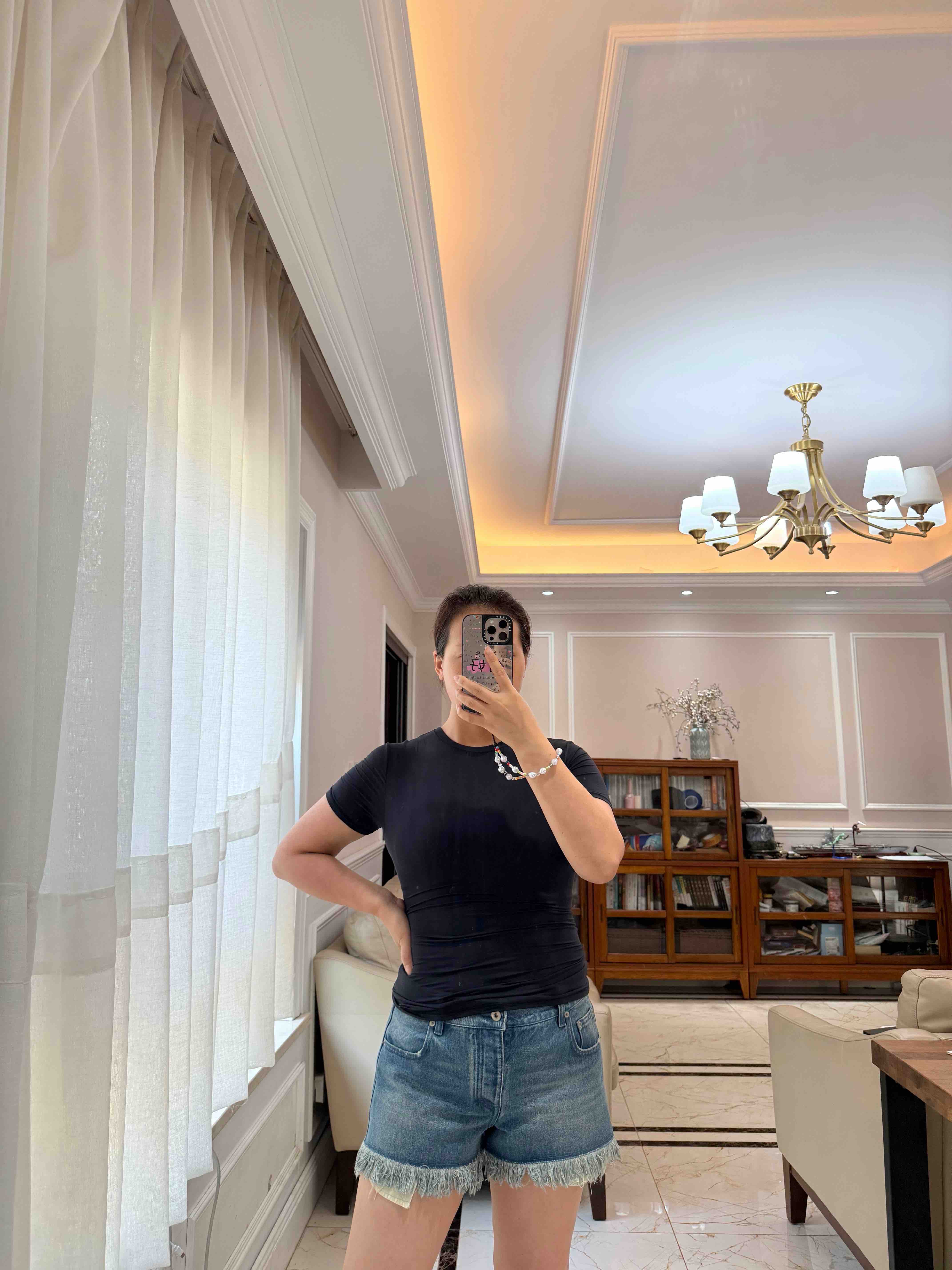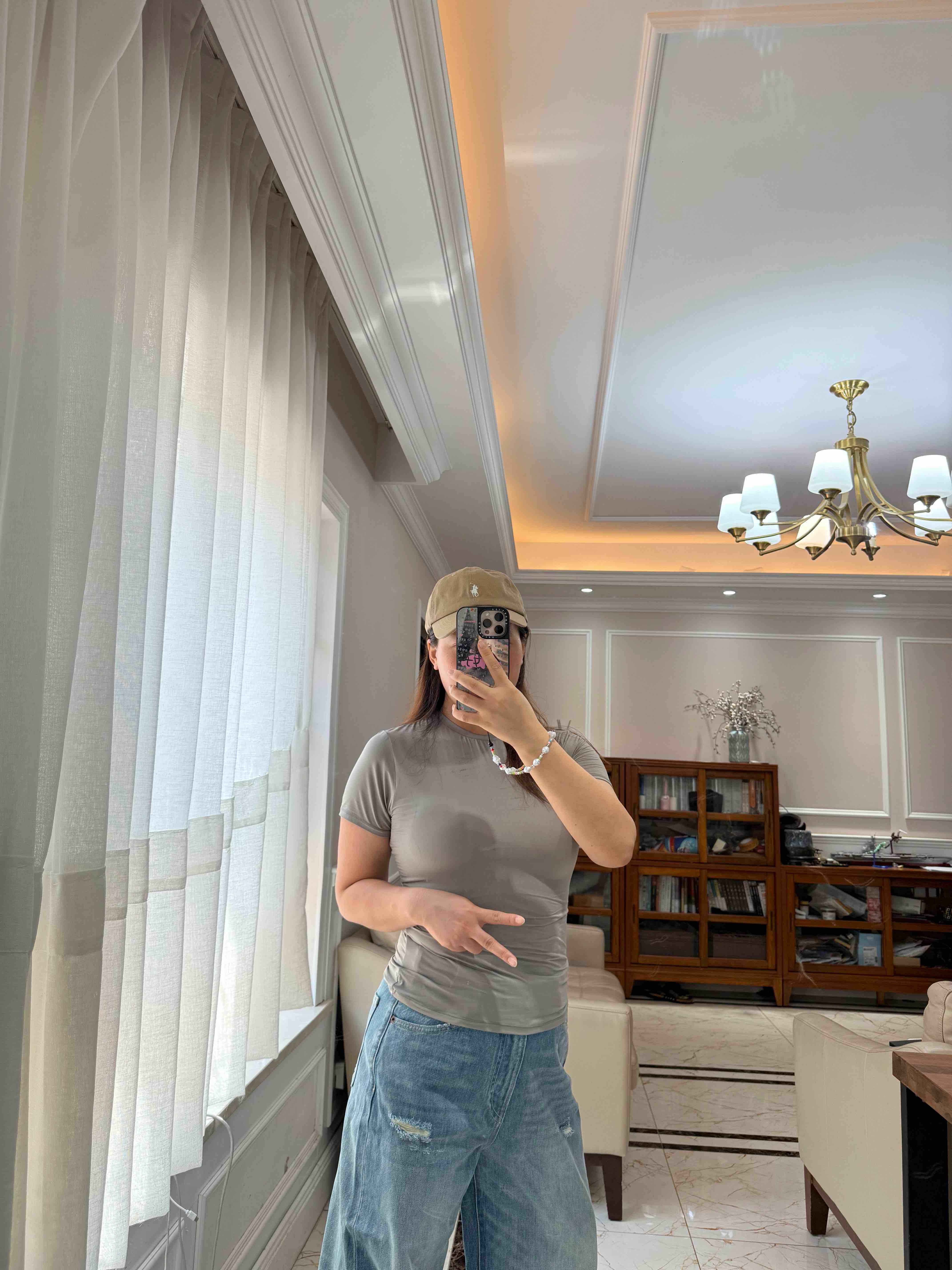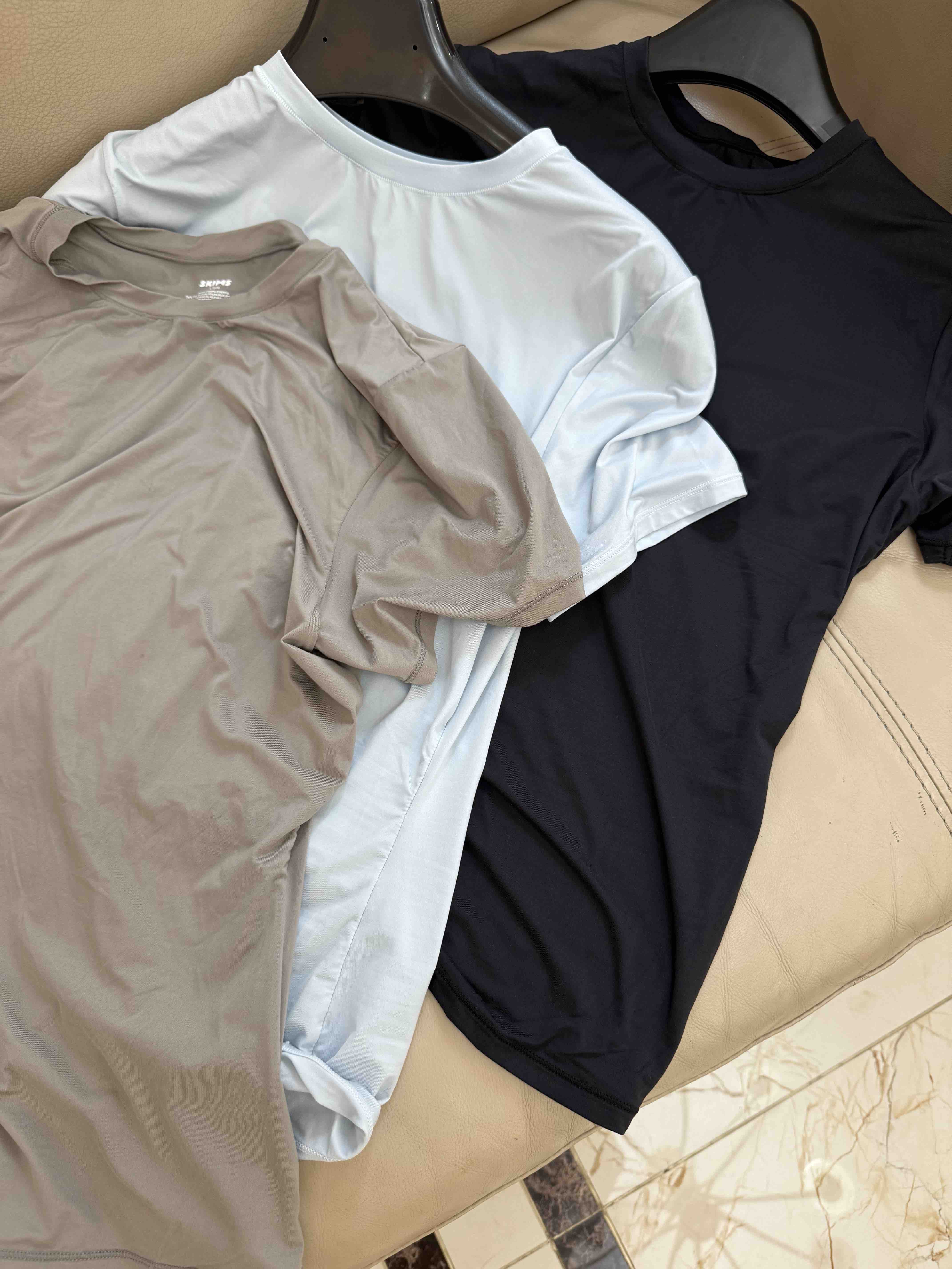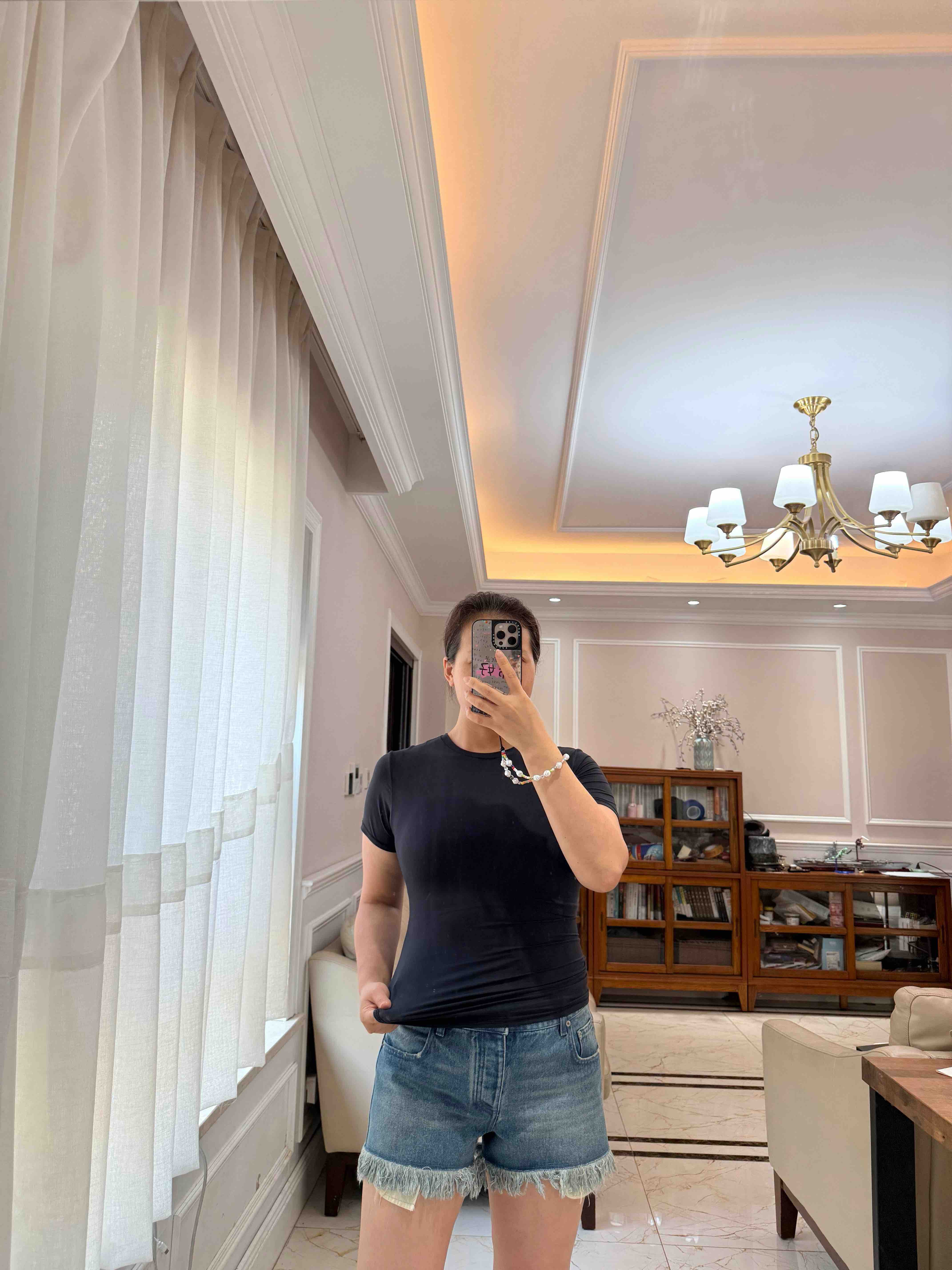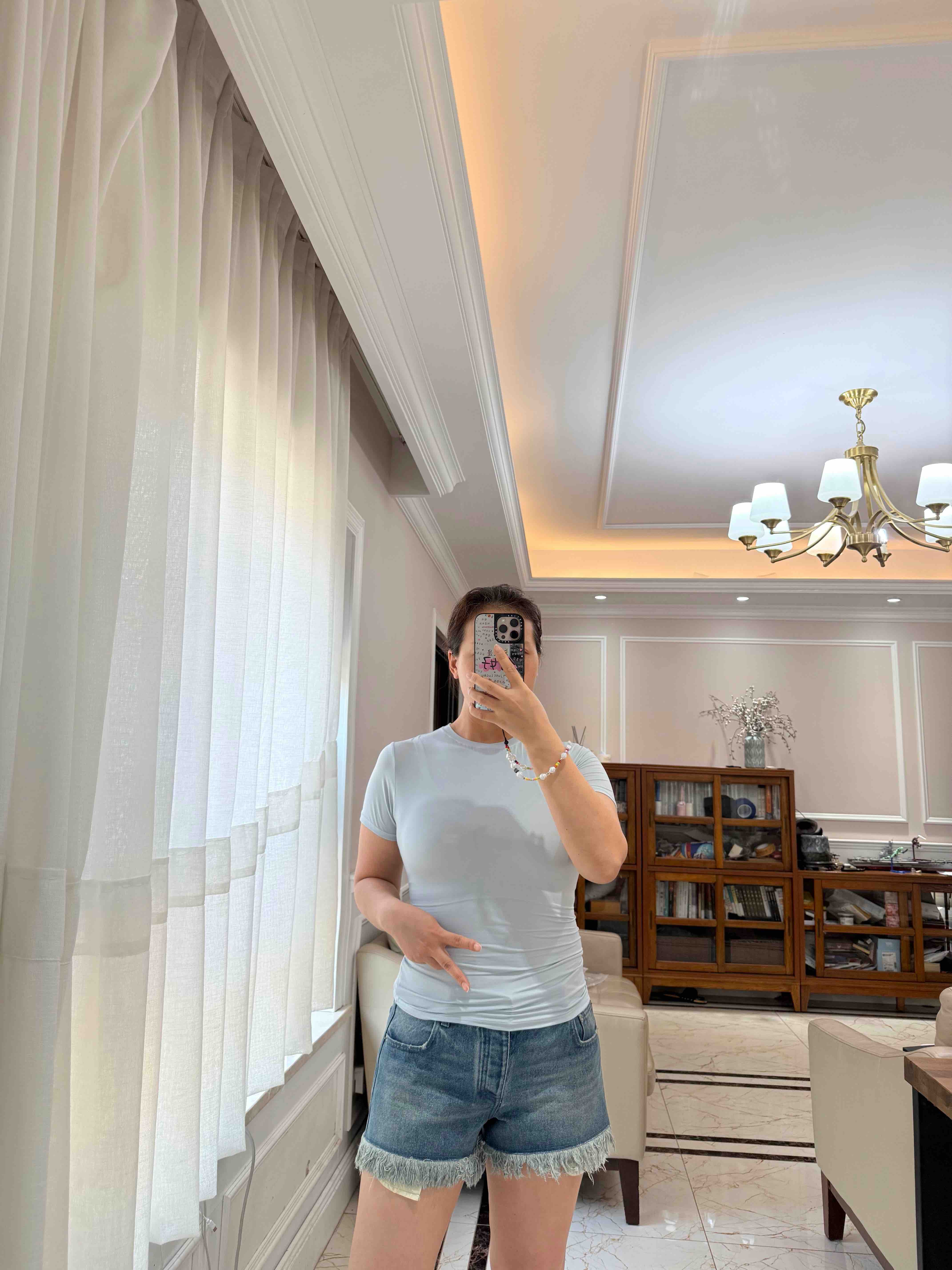 咱们只有三个颜色,黑色,灰色,冰蓝色,内衣你们穿那种无痕的就好。略高的领口,正肩修身版型,从不敢穿修身T恤的老嫂子,连入三色,我利用率最高的单品,咱们SKMS系列基本不赚钱,外头除了ZG只能俺家。