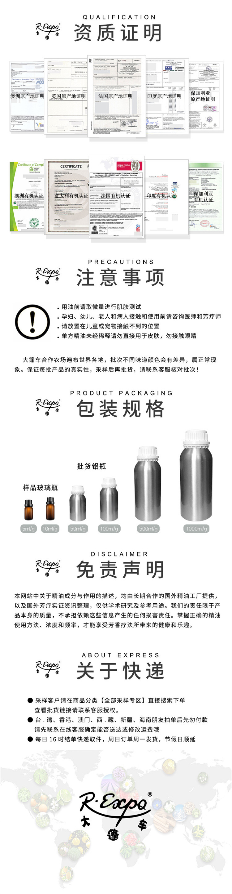 大篷车R-EXPQ精油 深度合作全球20多个国家与70多个国际农场,拥有独立芳香师、配方师、调香师团队, 致力于自然植物精油原料供应与香氛香调定制研发,产品结构围绕“环球优选精油原料库”和“海量原创香