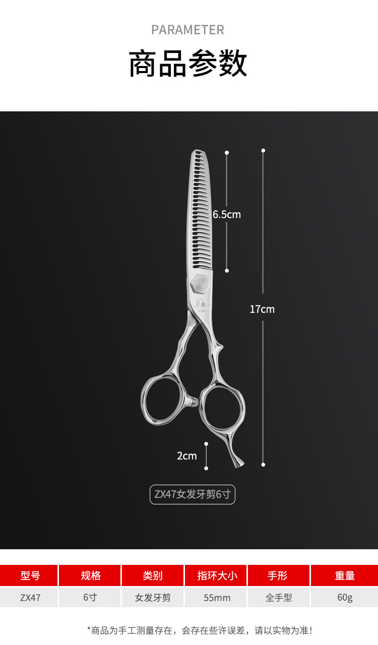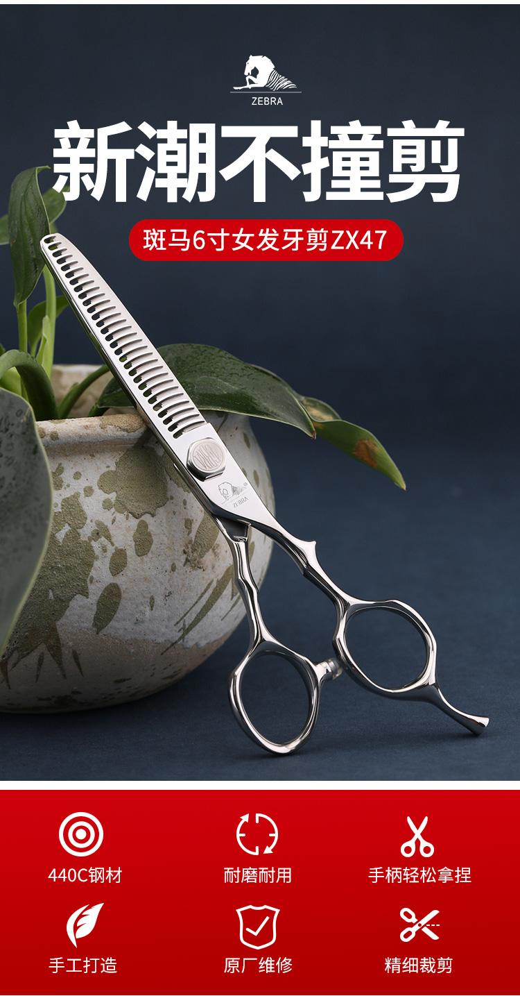 ZEBRA斑马牙剪ZX47 牙剪/调量剪/无痕牙剪/打薄剪/去发量5%-8%/ 平齿/正刃/6寸