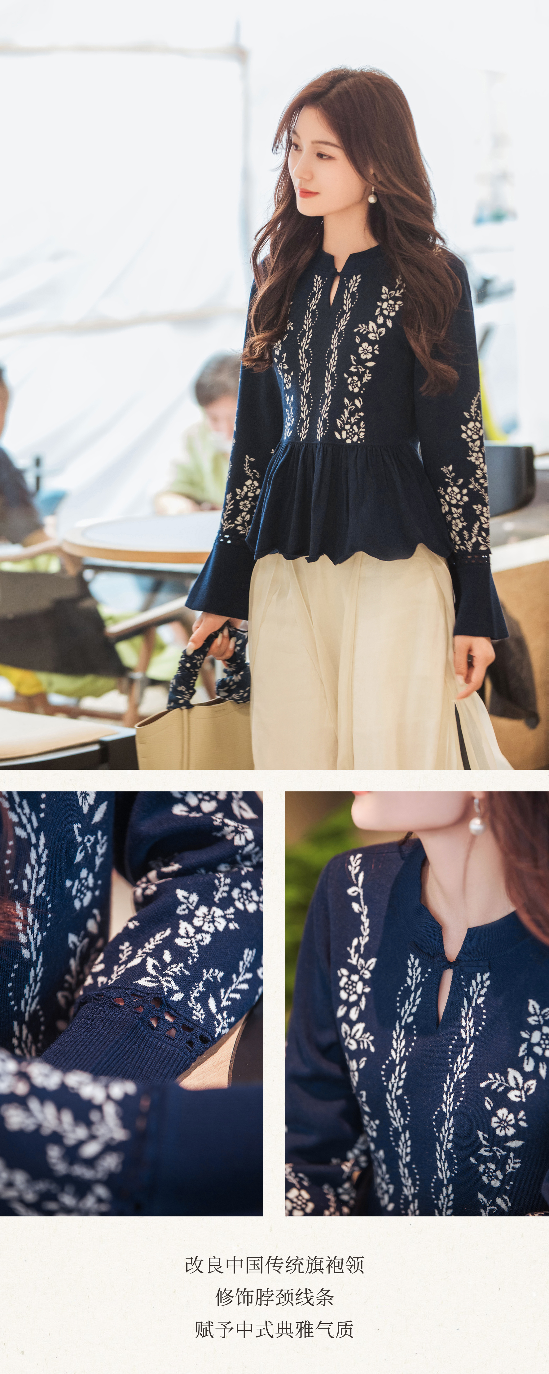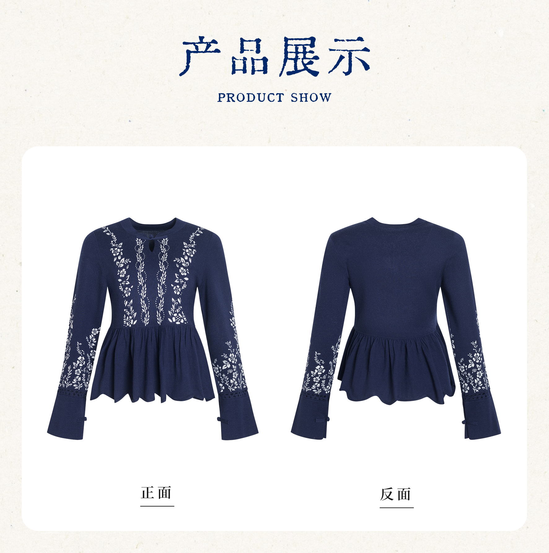 【林栖设计小店】(现货)【林栖推荐】荷叶边复古毛织上衣2024秋季新品优雅气质显瘦上衣女T1951208