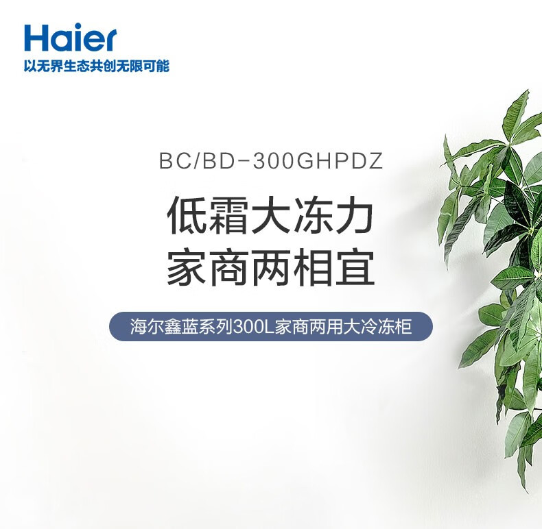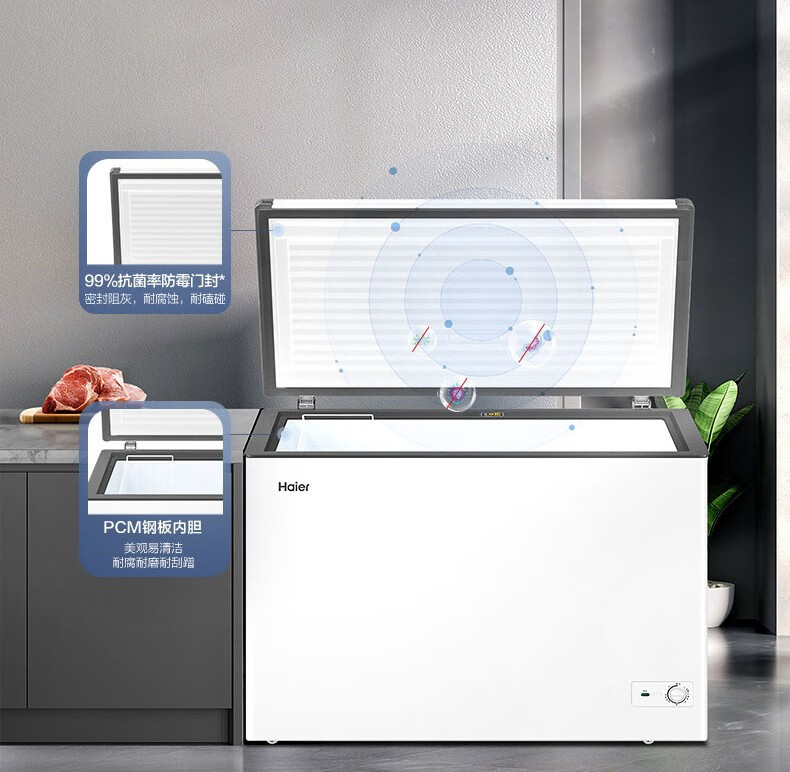 海尔(Haier)300升 卧式低霜 商用家用冰柜 大容量冷藏柜 减霜80% PCM钢板内胆 内置食品筐 带轮子一级能效BC/BD-300GHPDZ