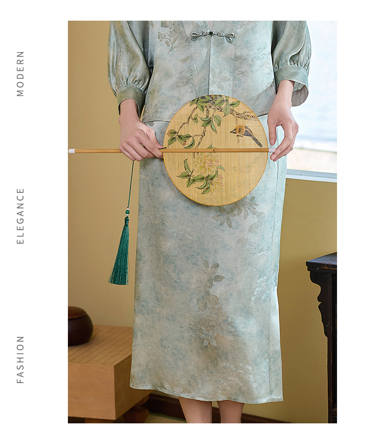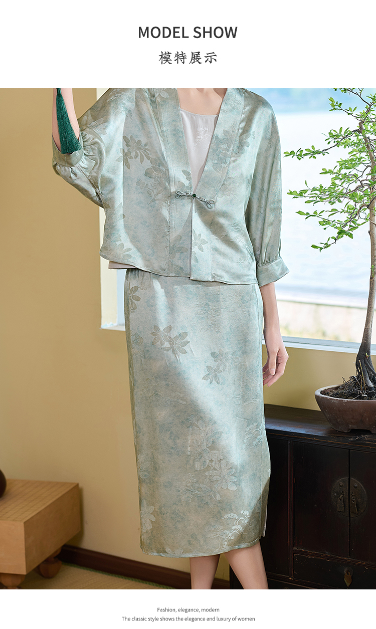 佐尔美夏季新款新中式国风桑蚕丝半身长裙女M52QS44