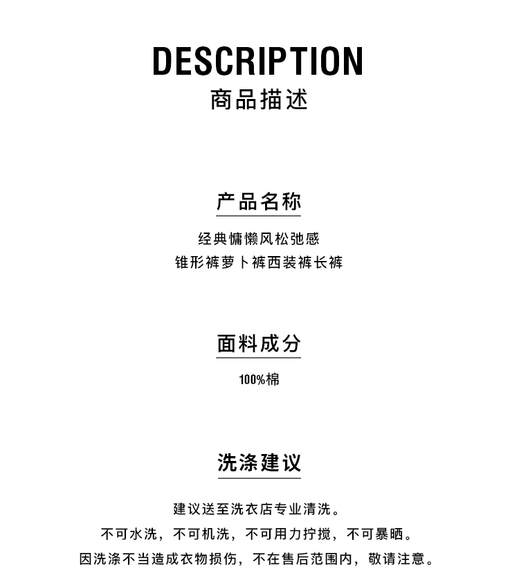 HIDEMI 经典慵懒风松弛感锥形裤萝卜裤西装裤长裤