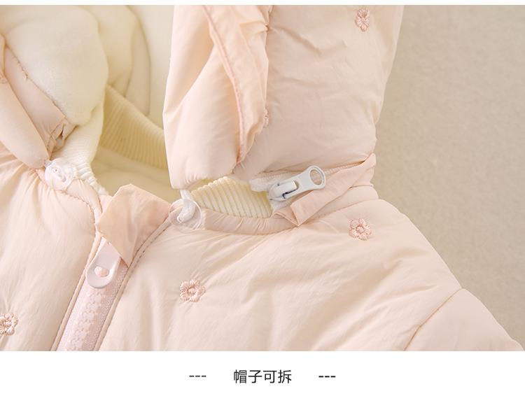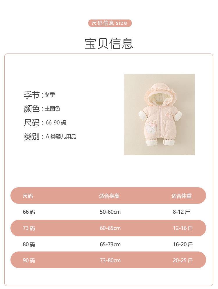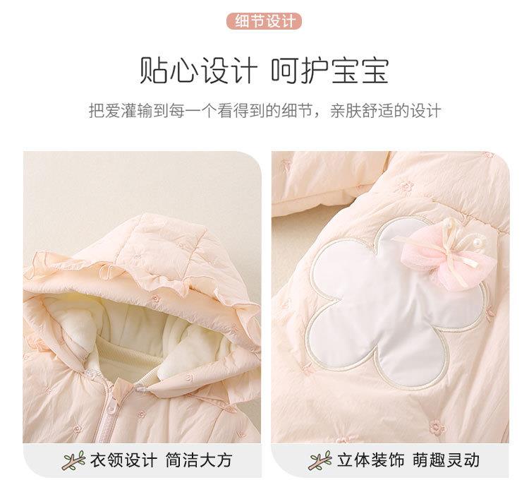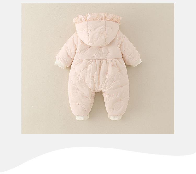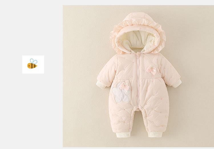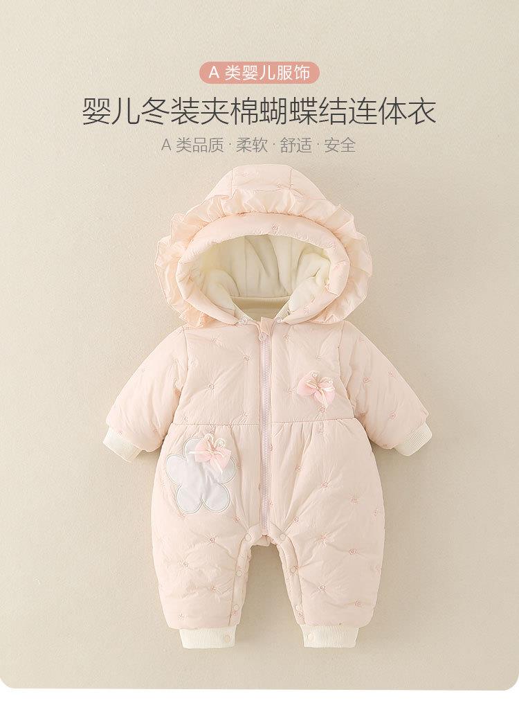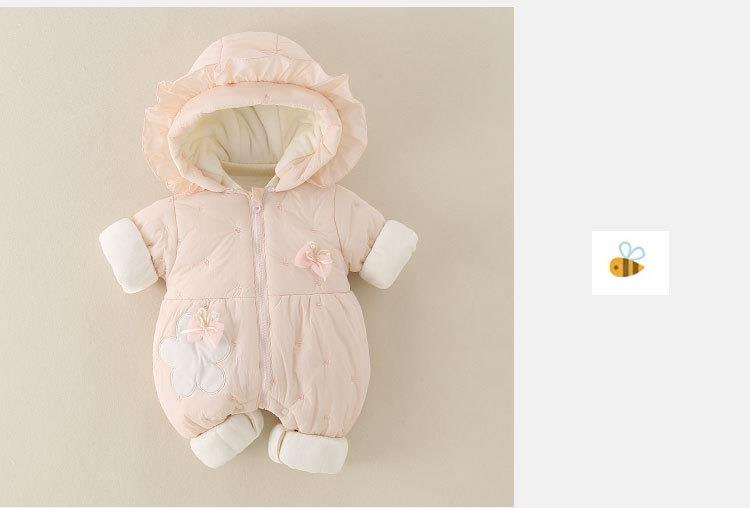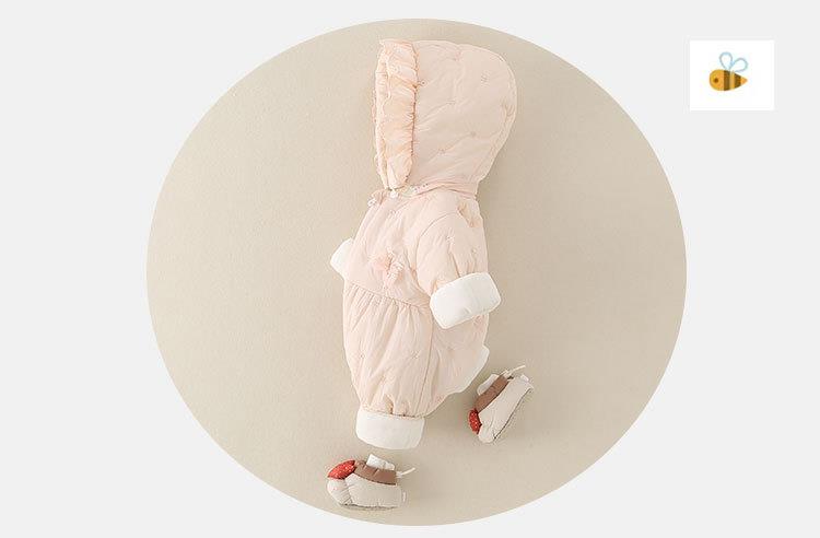 婴幼儿冬季款加厚女宝宝外穿连帽连体衣甜美可爱爬服加绒保暖棉服