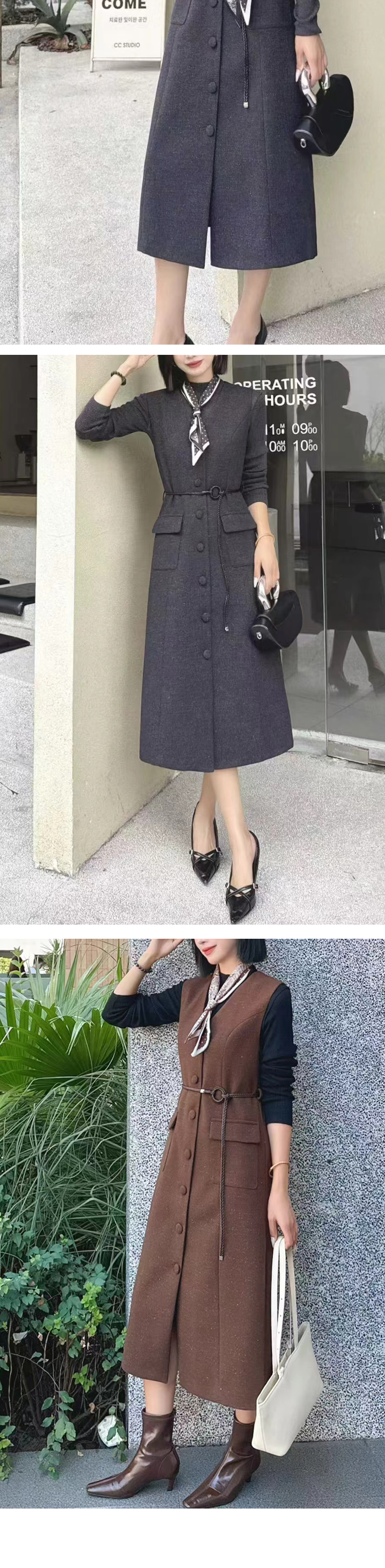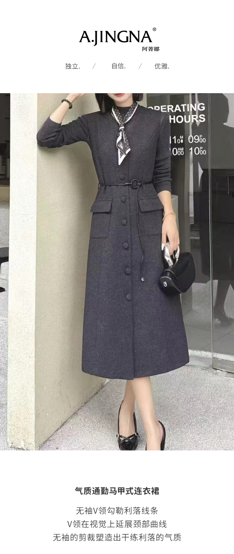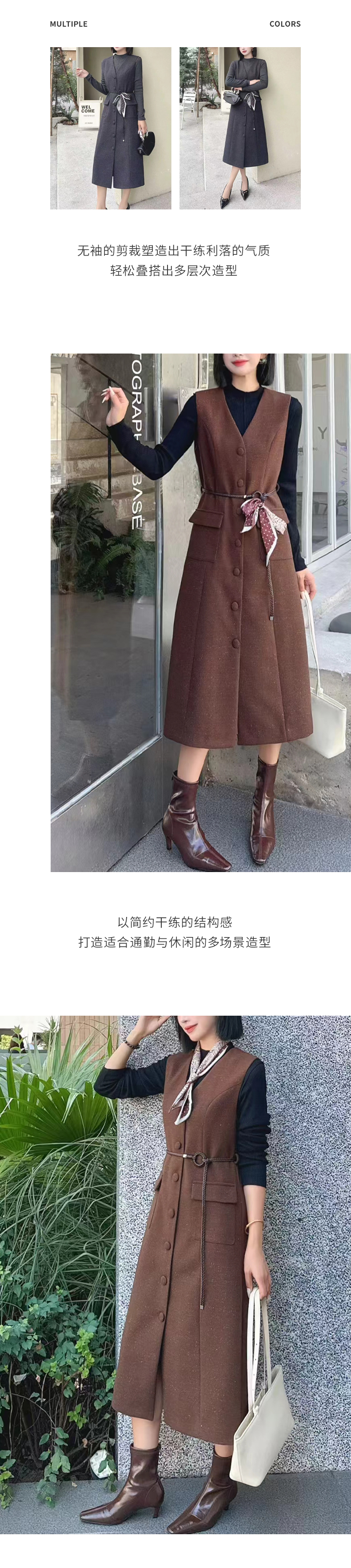 【通勤马甲式】阿菁娜秋季新款马甲式连衣裙通勤飘带设计收腰X型轮廓无袖V领F30D212003