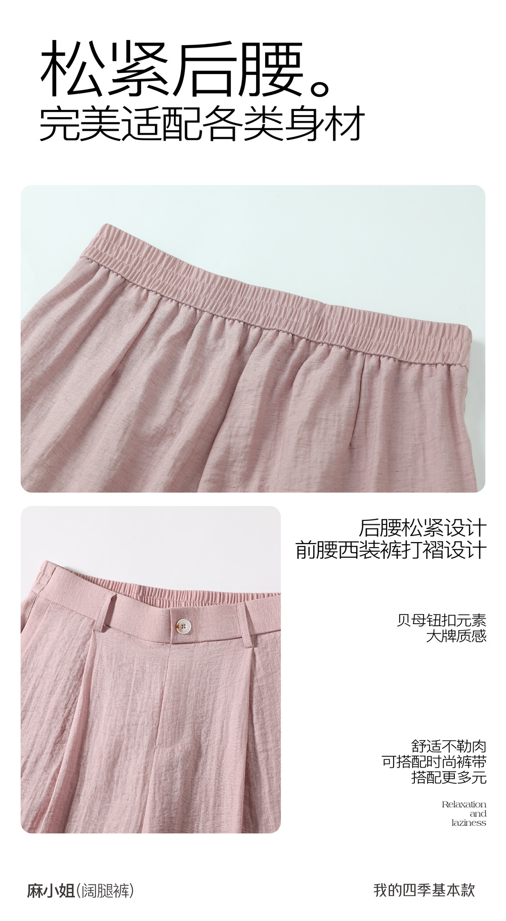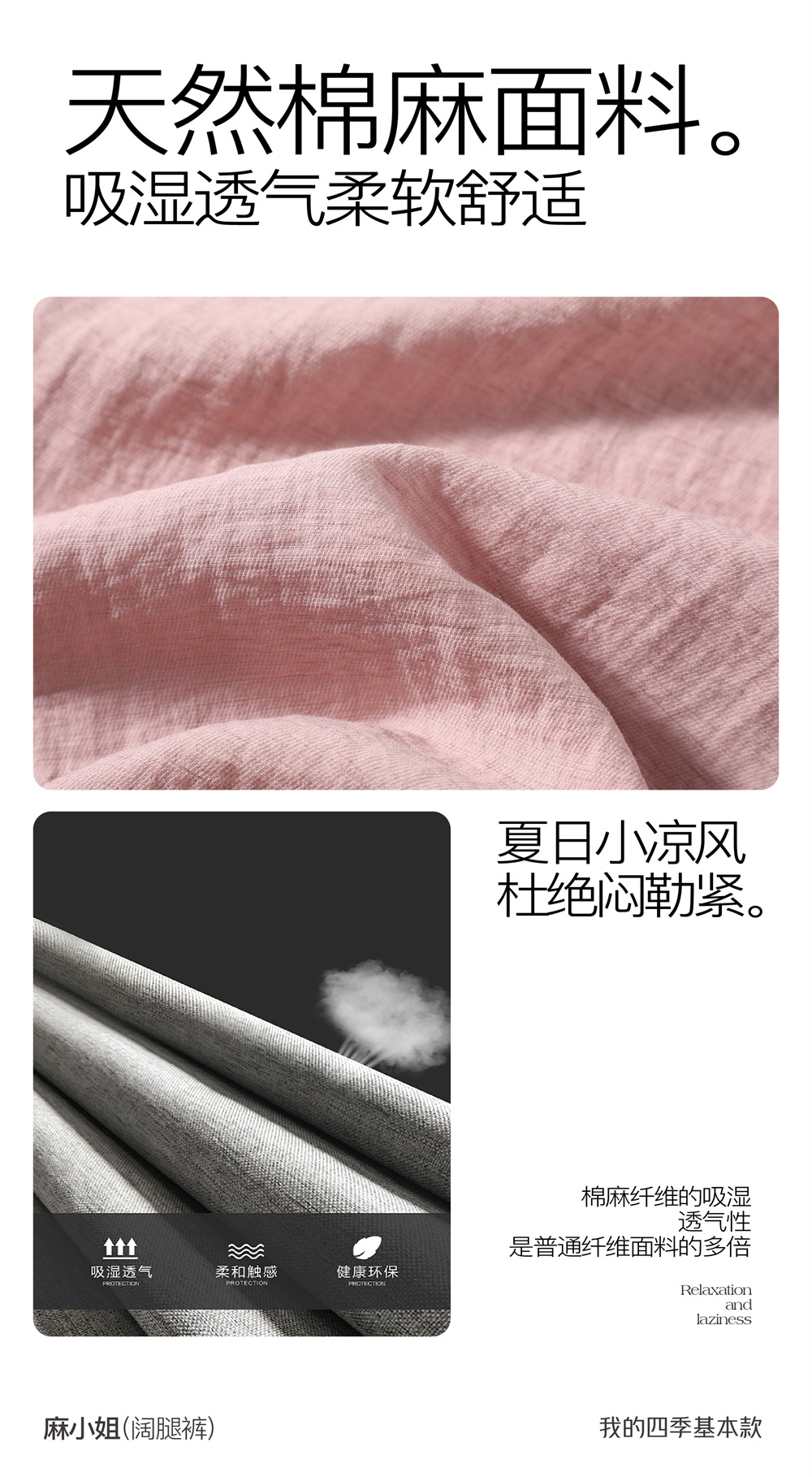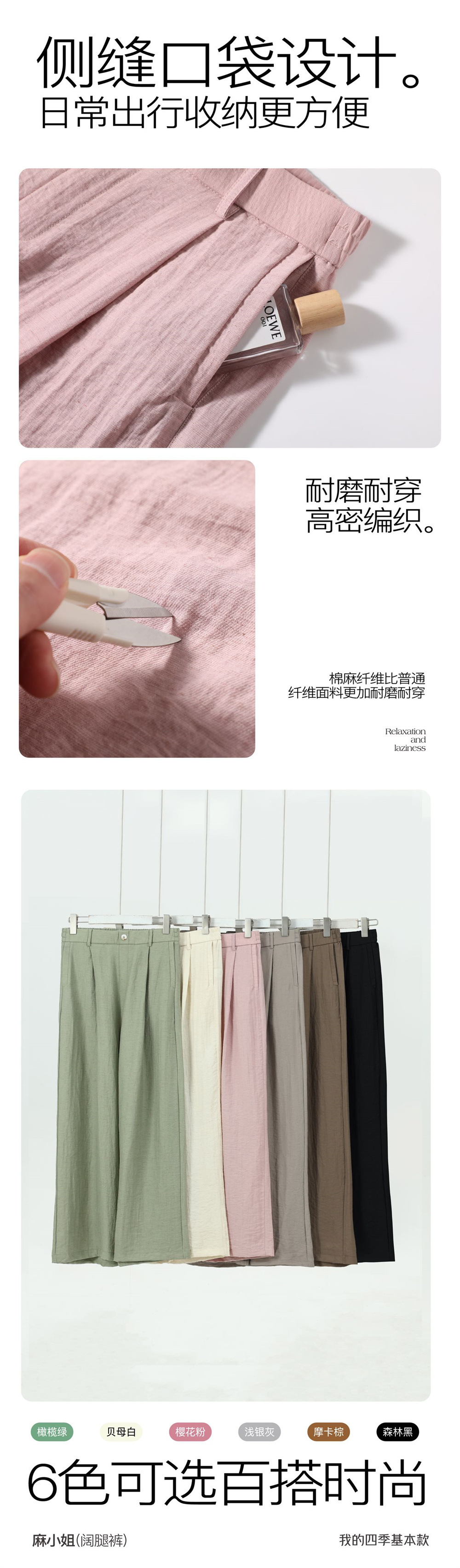 清凉显瘦!麻小姐亚麻棉感阔腿休闲裤 吸湿透气 柔软透舒适 显高显瘦 5色可选
