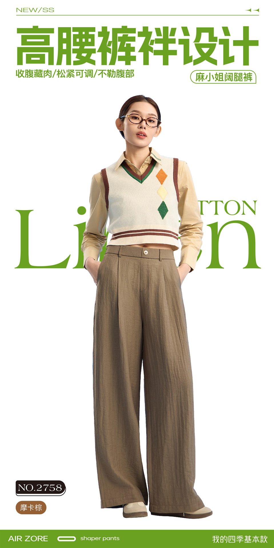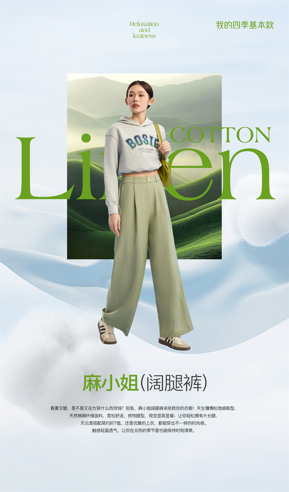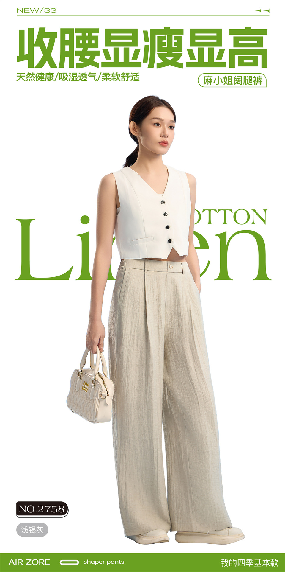 清凉显瘦!麻小姐亚麻棉感阔腿休闲裤 吸湿透气 柔软透舒适 显高显瘦 5色可选
