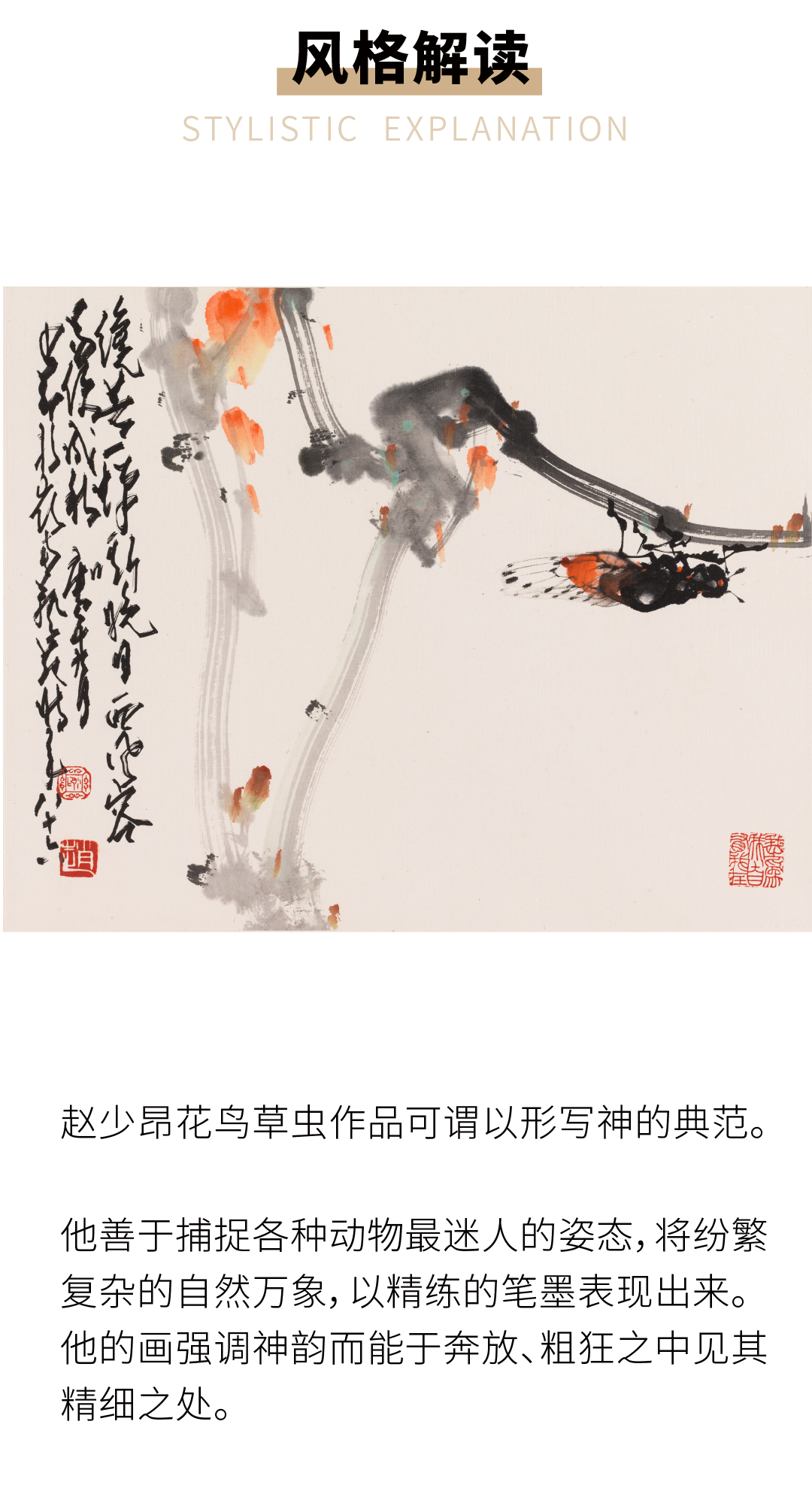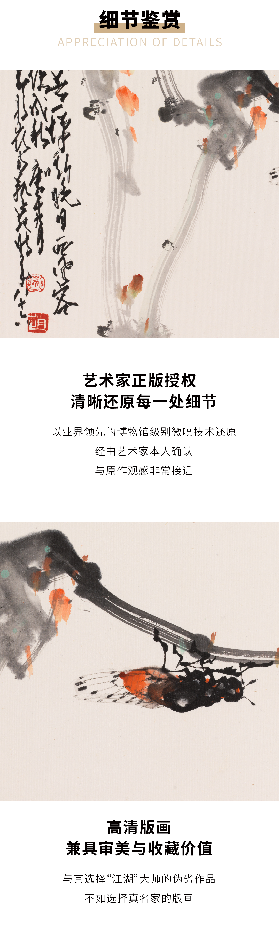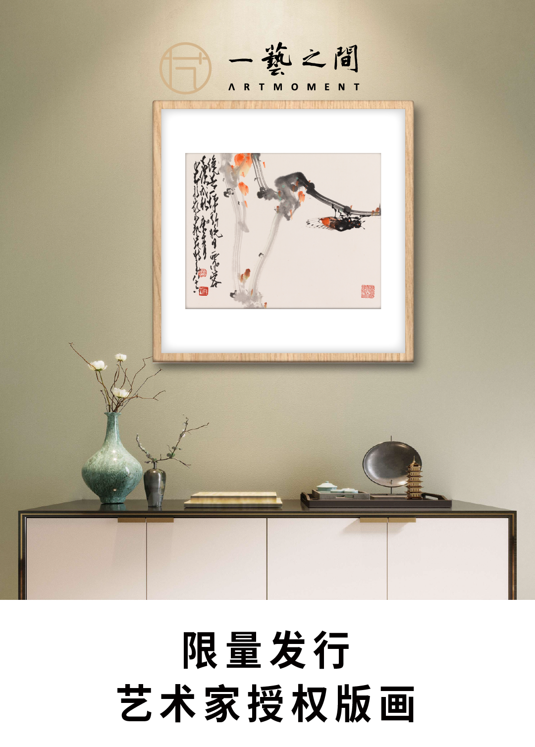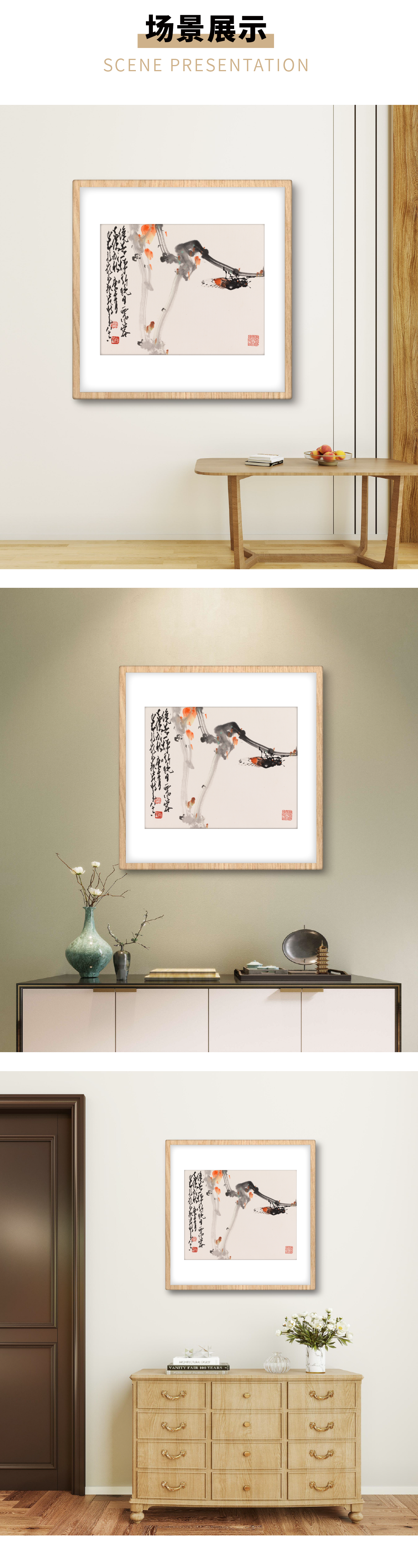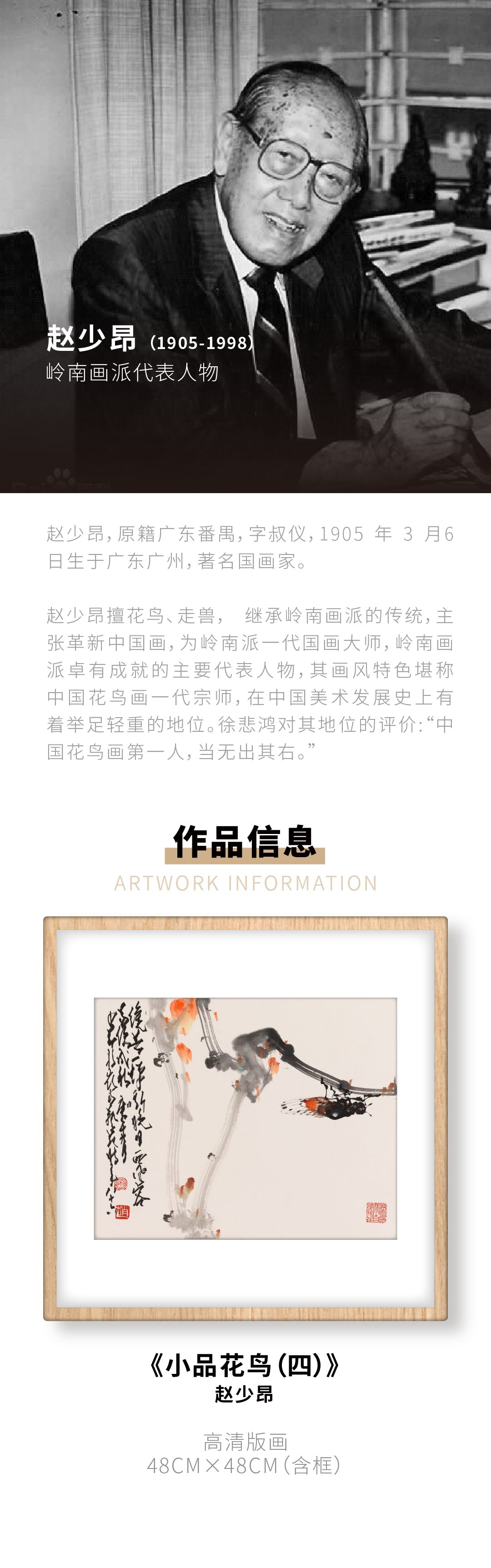 高清复制画 赵少昂《小品花鸟(四)》48cm*48cm 含框 复制装饰画 新中式风格轻盈高清雅致好搭配茶室客厅书房办公室已装框