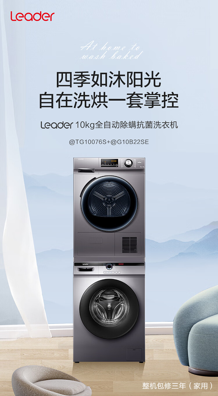 Leader统帅 海尔出品洗烘套装 10Kg洗衣机全自动+10Kg热泵烘干机家用