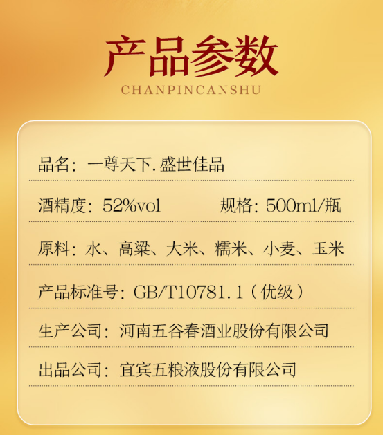 【一尊天下盛世佳品】 🌟52度浓香型优级白酒 打开就闻到了馥郁的香气 精选原粮 高粱、大米、糯米、小麦、玉米 既保持了浓香型白酒的口感 又有纯天然粮食的营养及风味 陈香浓郁,窖香幽雅 纯粮食酿造的就是不一样~ 入口绵甜醇和,入喉净爽丝滑 各味协调,恰到好处,回味悠长 好的精酿酒就是即使喝多了 也不会觉得头疼 胃里不舒服!