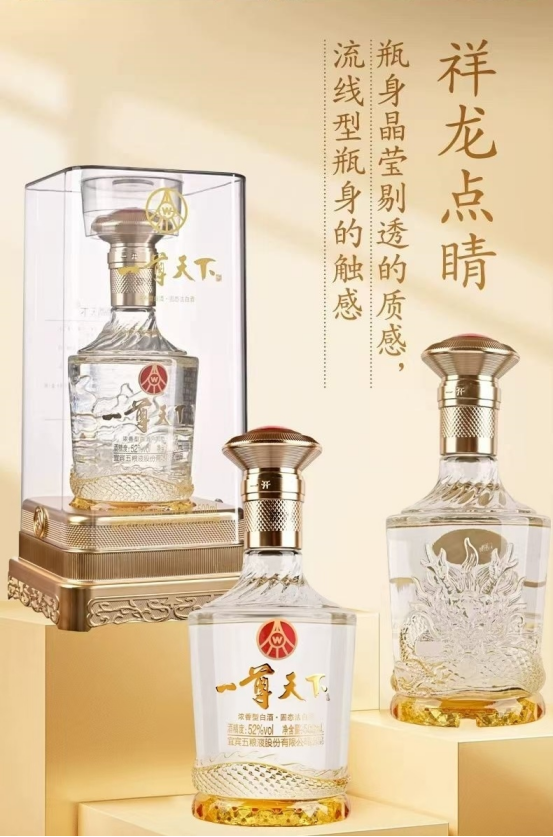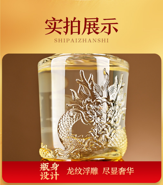 产品本身真是让人惊艳,精美的瓶子上面雕刻着精致的浮雕龙纹, 中间镶嵌着一个五粮液经典徽章😲 金色瓶盖,透明玻璃瓶,清晰的液体, 每一个细节都展现了其高品质和精湛的工艺。 拥有独特的经典五粮浓香口感和香气, 浓香型固态法白酒,每一口都是一次美妙的体验🤗 整体设计充满了中国传统文化的气息,彰显尊贵与霸气❗❗