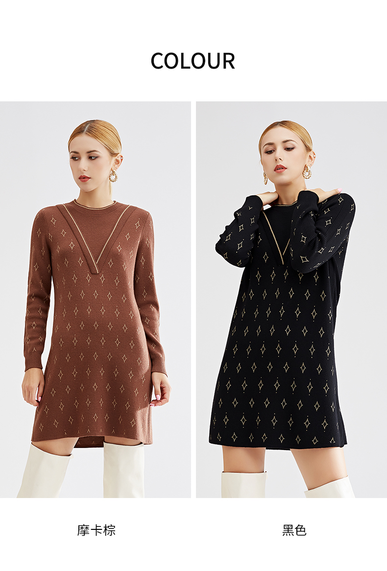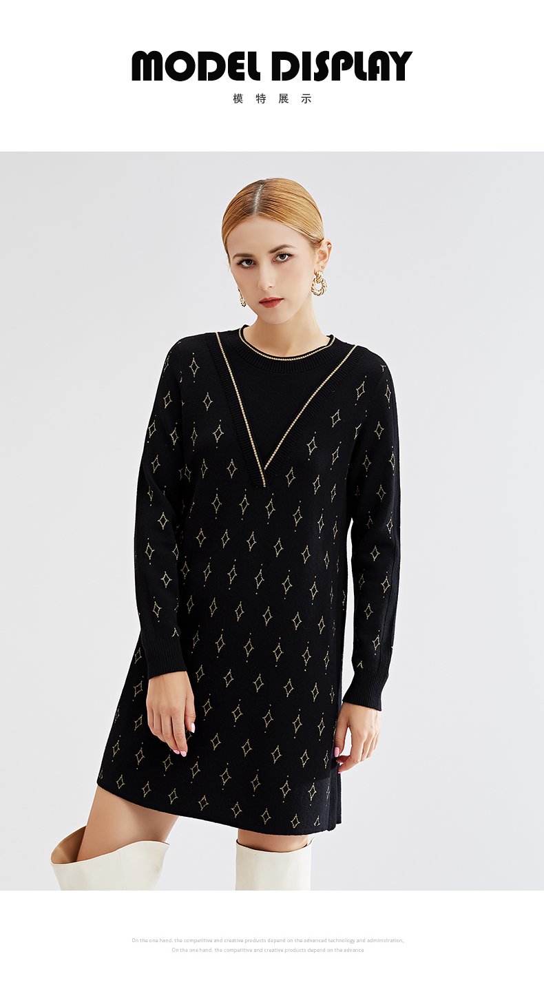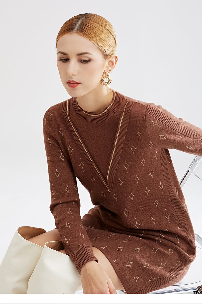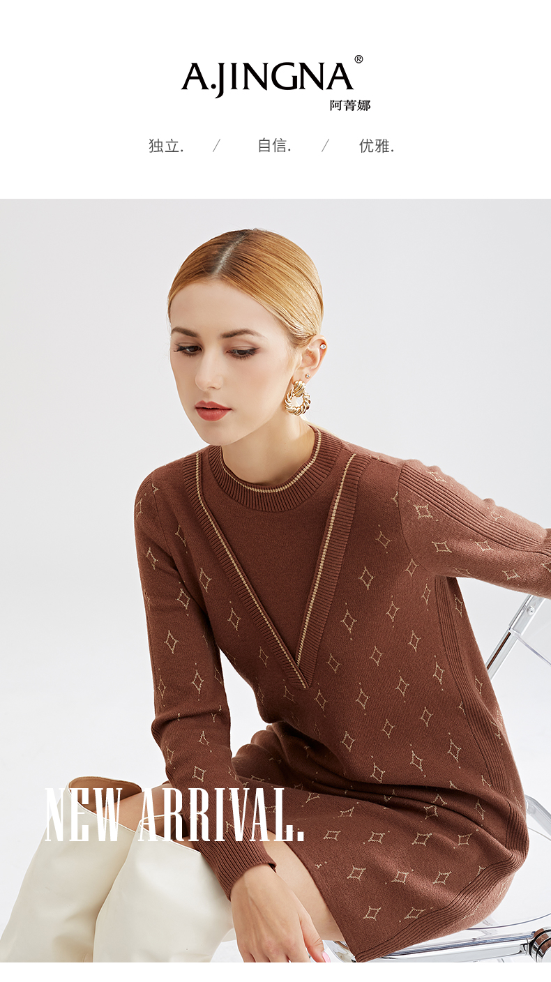 【特价款不退不换】阿菁娜秋冬新款原创复古花纹三色芝麻点提花减龄高级两件式A27D312035