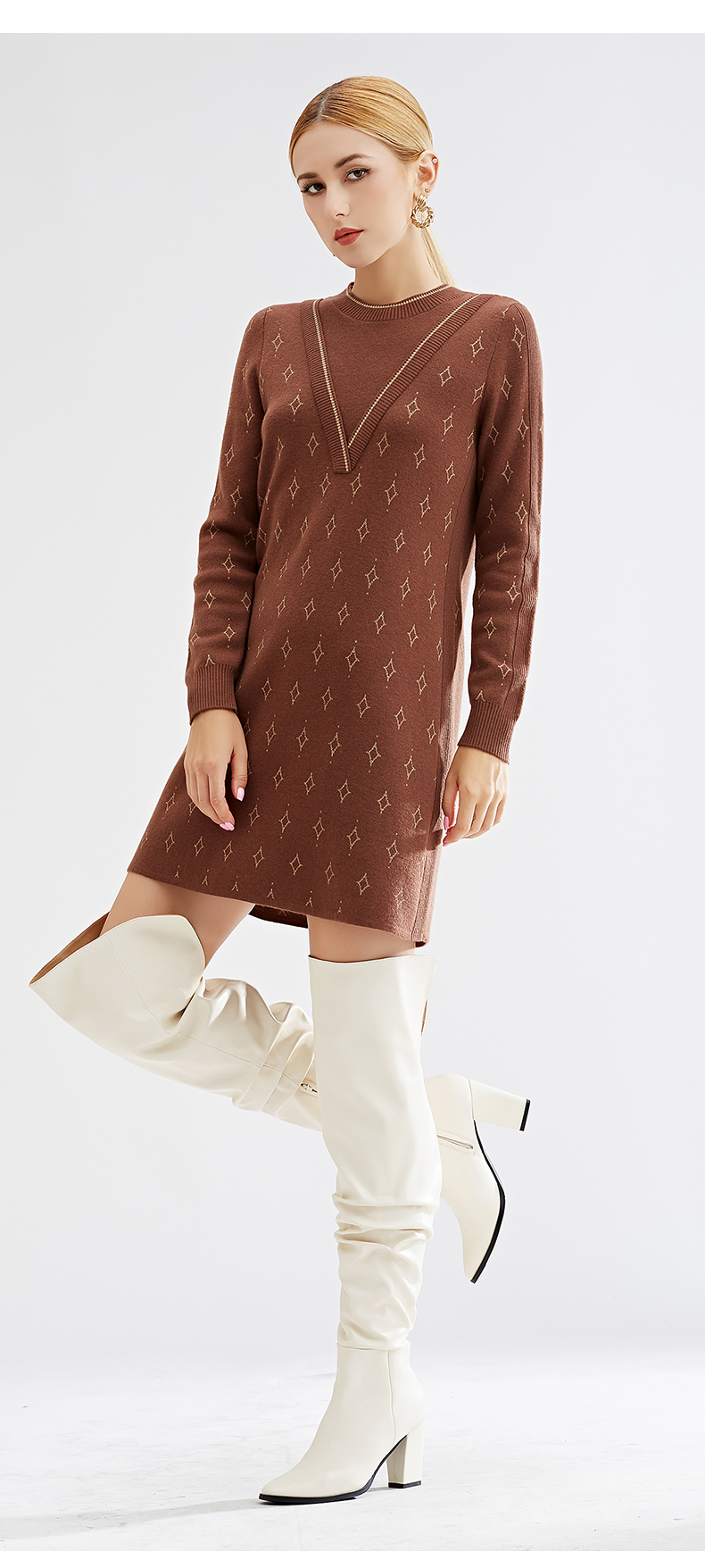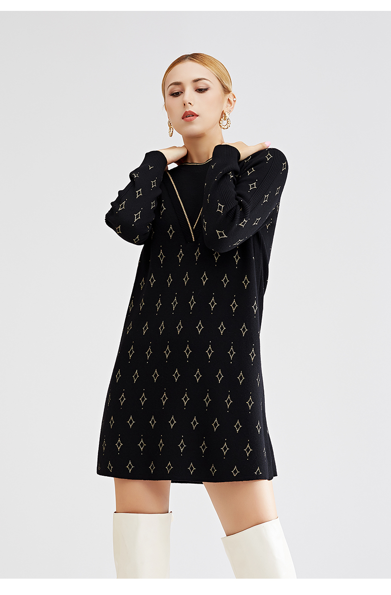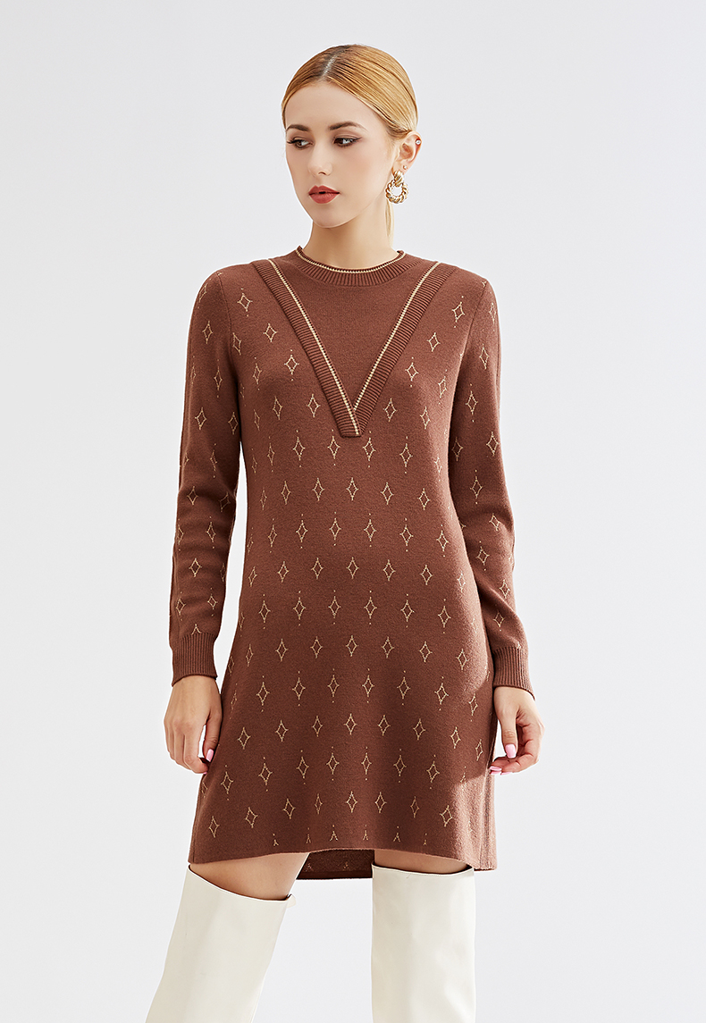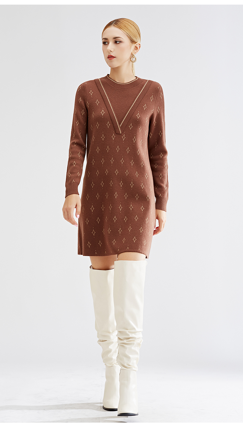 【特价款不退不换】阿菁娜秋冬新款原创复古花纹三色芝麻点提花减龄高级两件式A27D312035