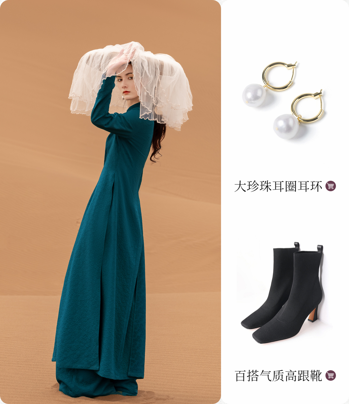 【林栖设计小店】提花长衫套装复古新中式百搭2023秋冬新品阔腿裤上衣女1934086