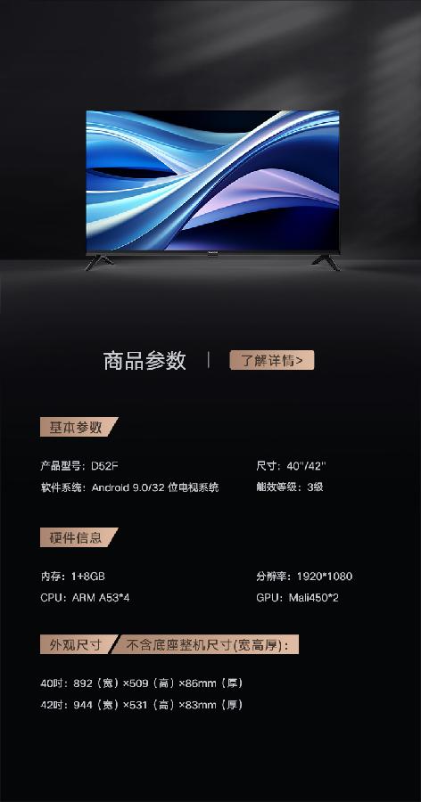 【会员价:1059元】广电优选 长虹电视机42D52F 42英寸