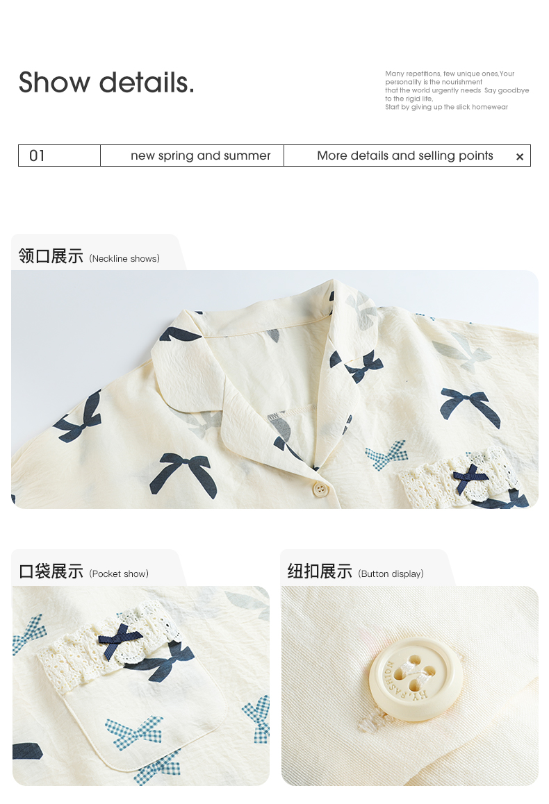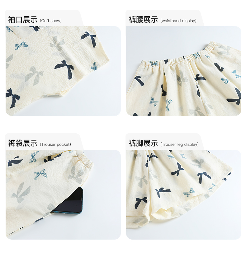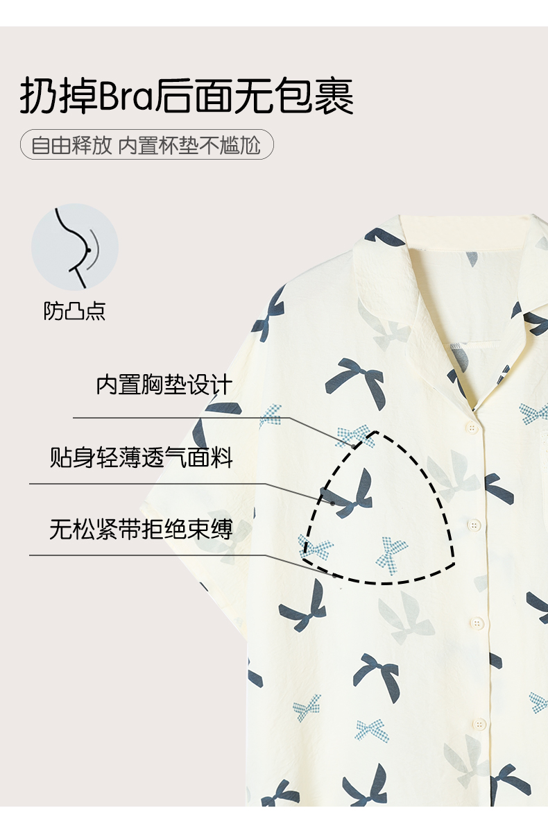可人儿小众设计师新款女士睡衣夏季短袖可外出家居服三件套