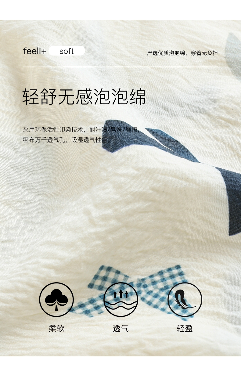 可人儿小众设计泡泡绵夏季女士吊带睡衣时尚可外出家居服三件套