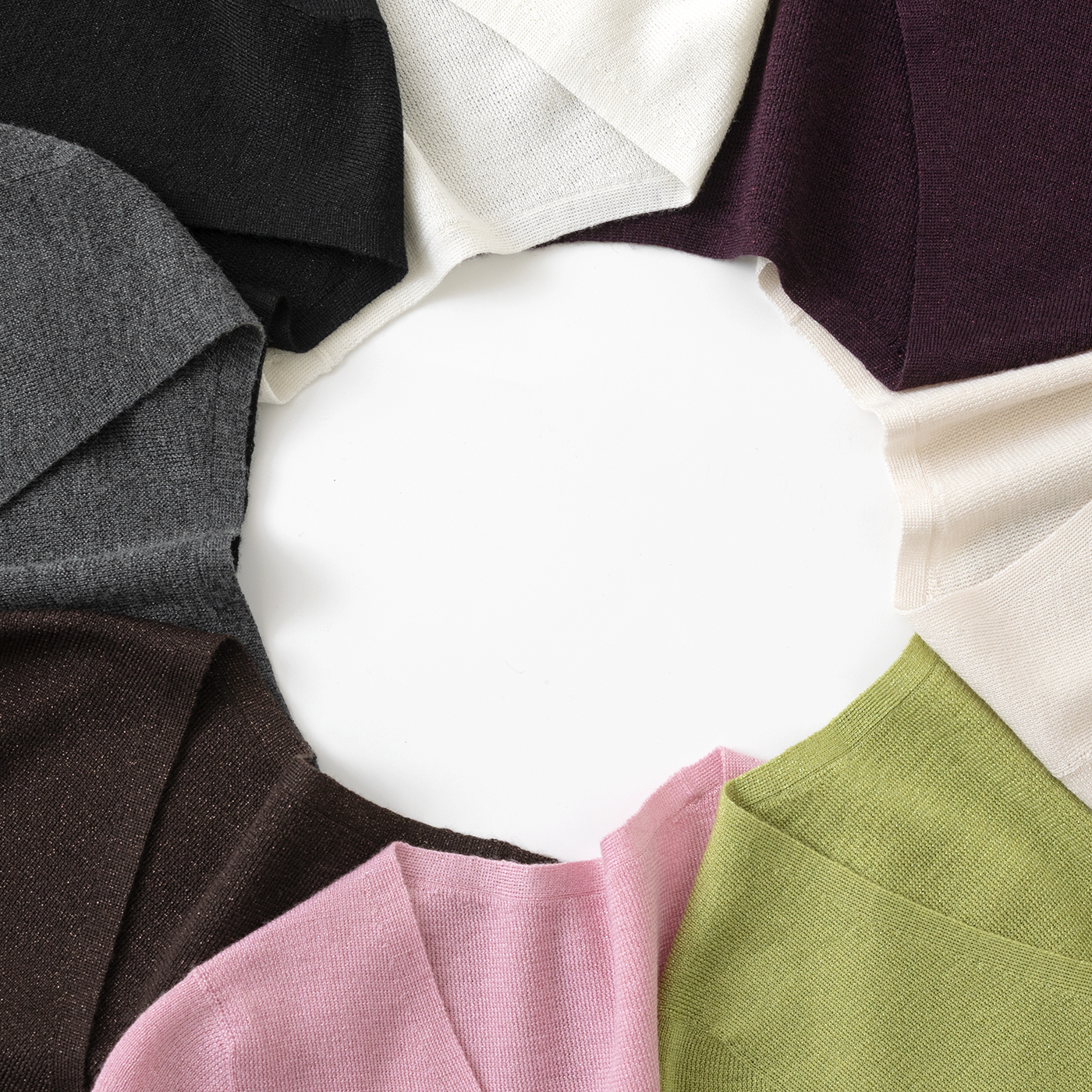 扬子60支精纺纱线(超细美丽诺羊毛),经过严苛精纺工序,纤维更细更匀,触感软糯亲肤,贴身穿毫无扎感,布面平整如镜。