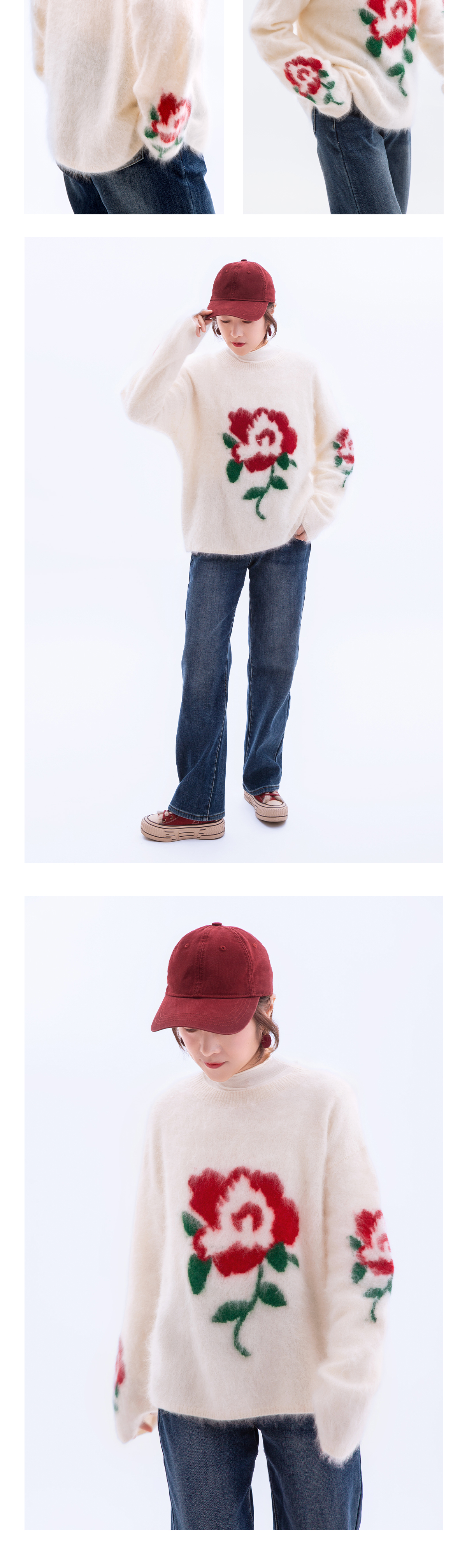 玫瑰提花套头拉毛毛衣