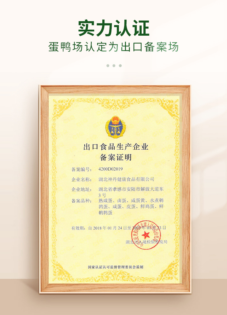 湖北神丹健康食品有限公司,中国实力雄厚的蛋产品加工企业,年生产、销售各类蛋品数亿枚,是中国目前品种全、销售广的禽蛋研发加工基地。神丹公司以“服务农民,健康人民”为宗旨,以推动中国健康食品发展为己任。