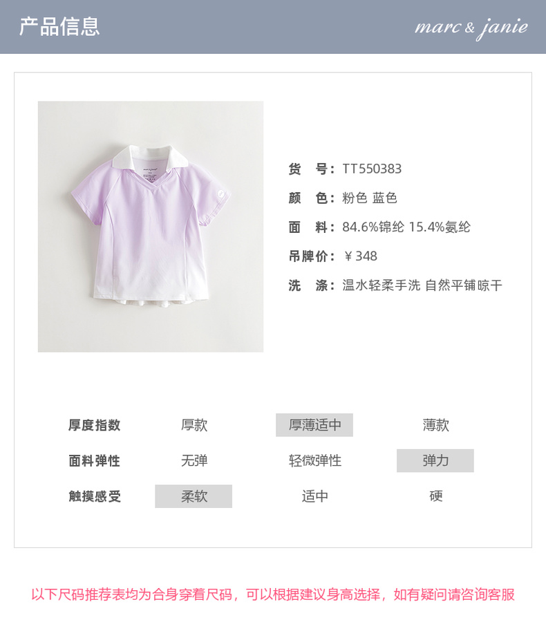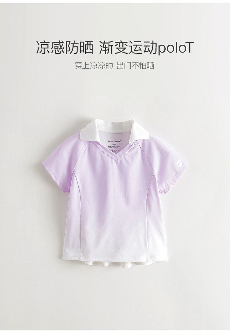 【凉感防晒】马克珍妮女童时尚渐变polo领运动T恤夏装新款550383