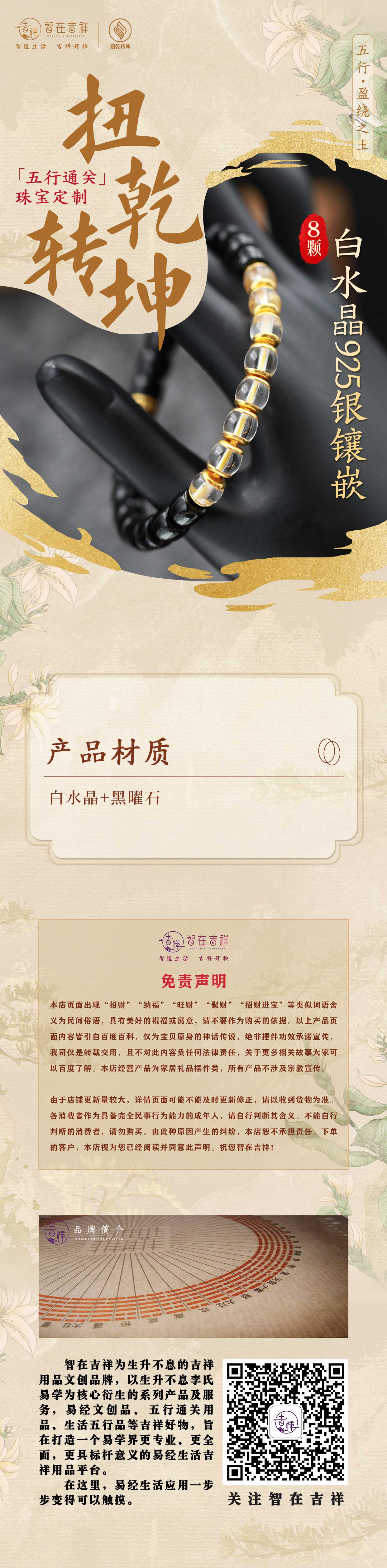 【盈绕之土】8颗白水晶925银镶嵌 手串