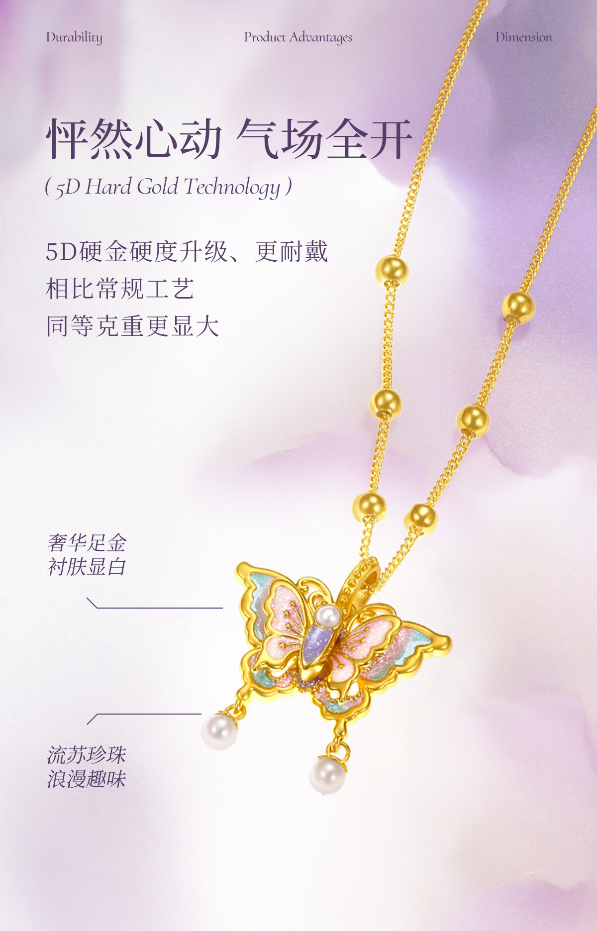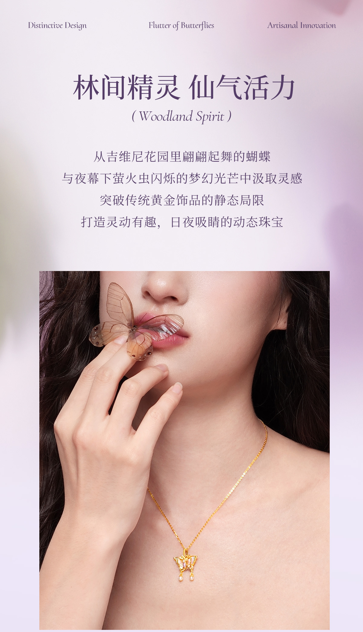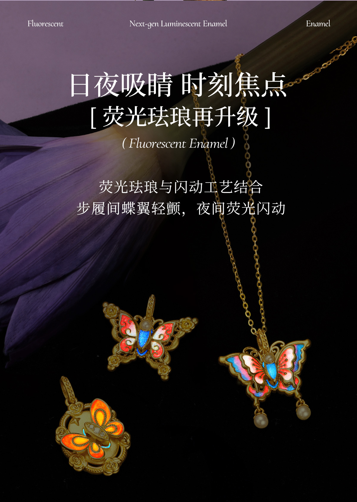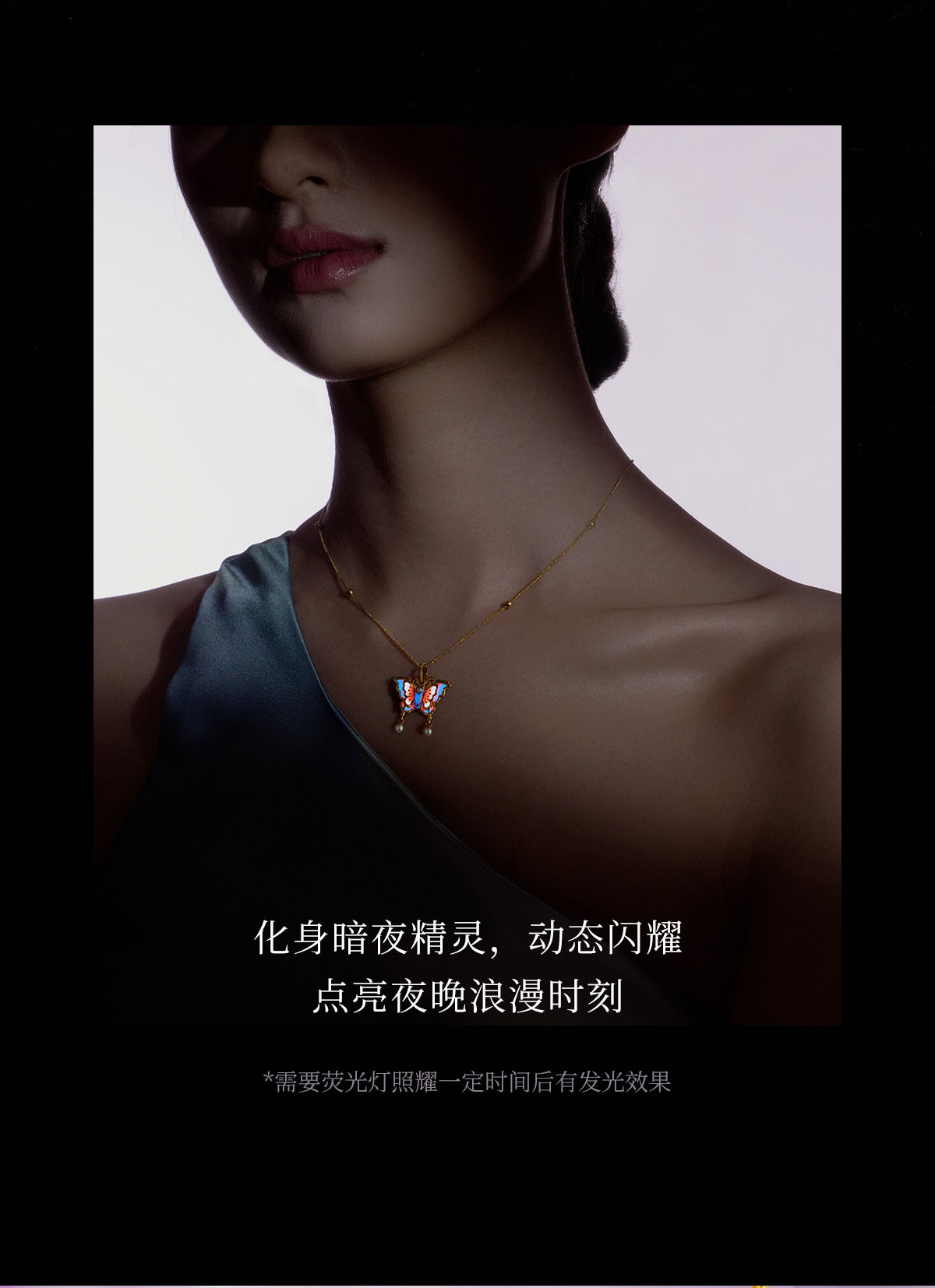 【无忧之夜同款】莫奈小花仙周大生黄金项链吊坠足金莫奈花园系列荧光珐琅闪光蝴蝶挂坠七夕礼物送女友赠莫奈礼盒赠荧光灯