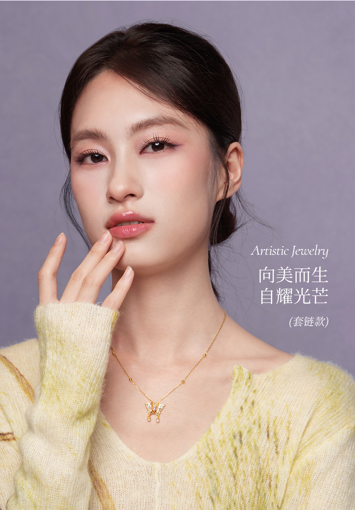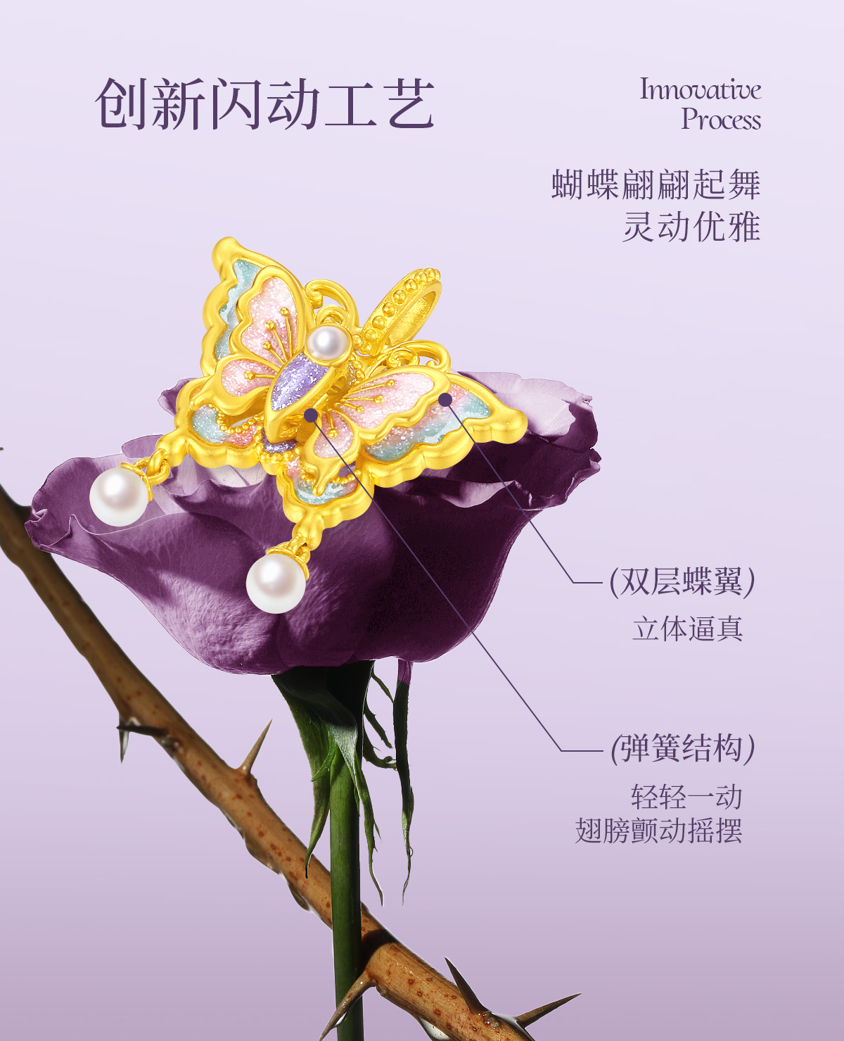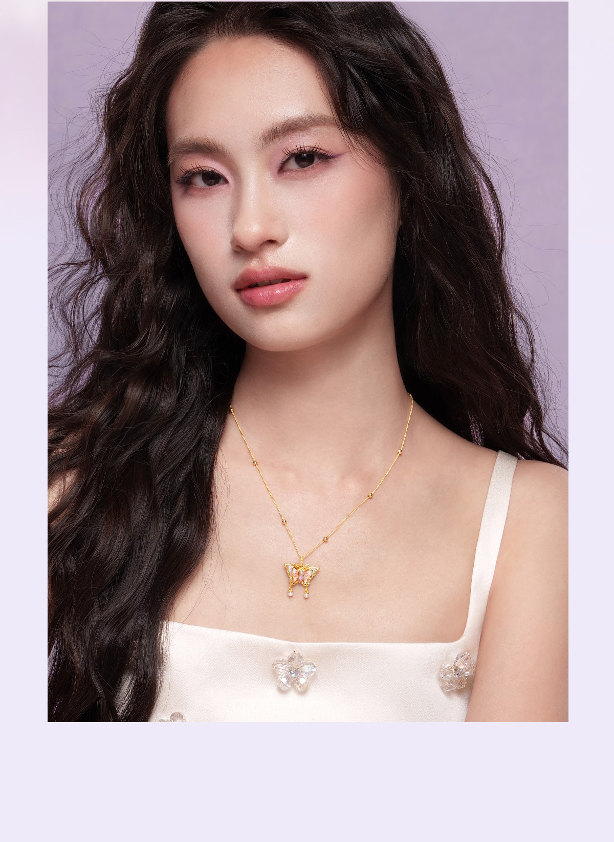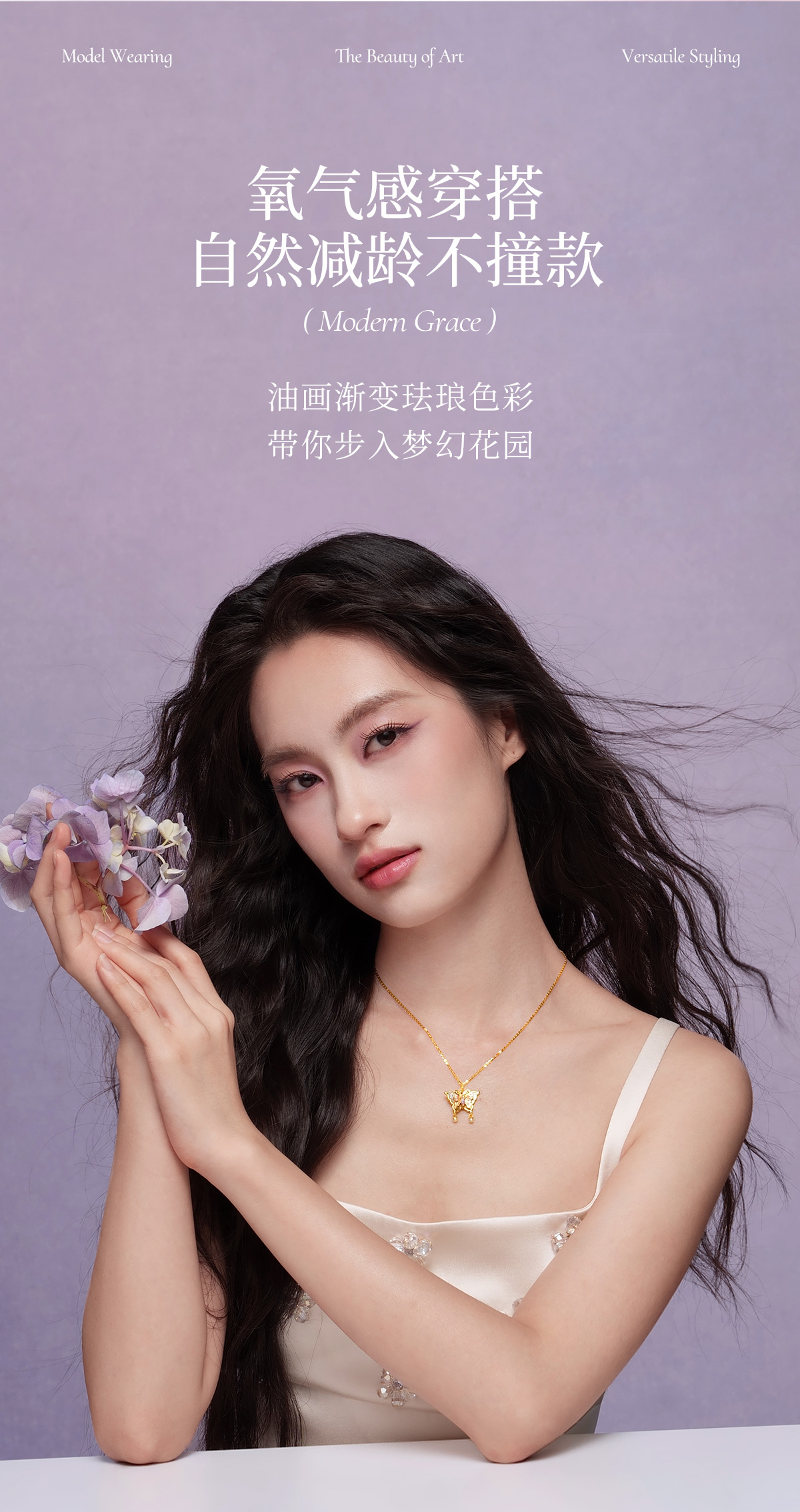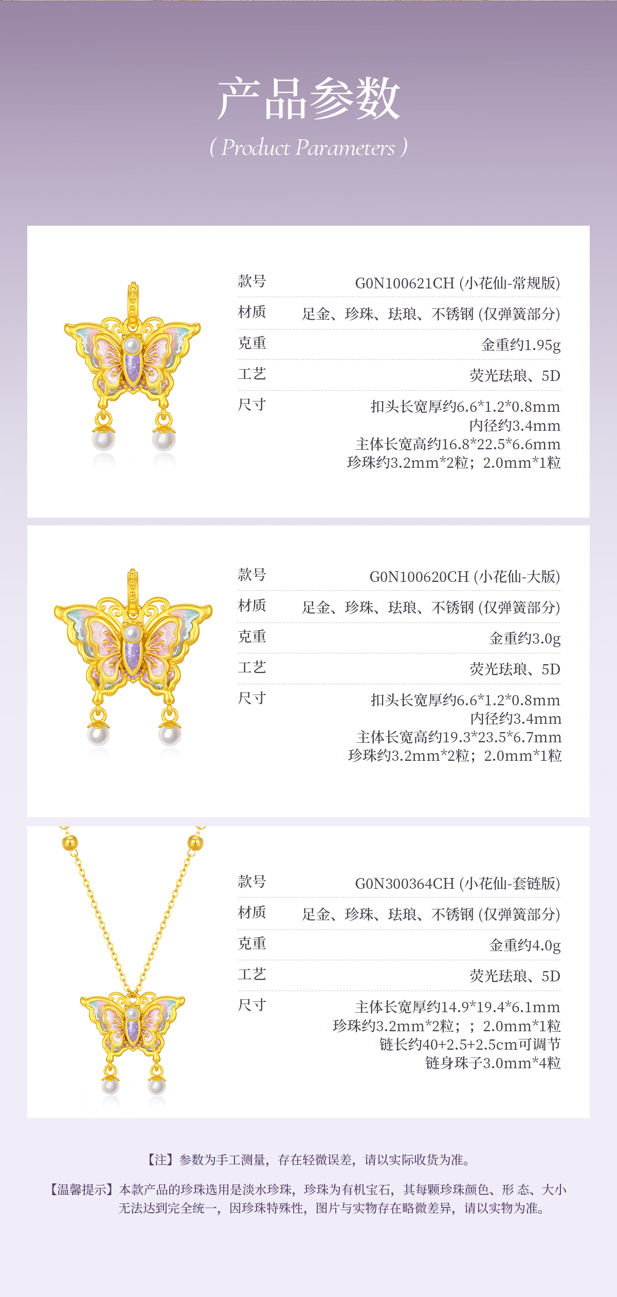 【无忧之夜同款】莫奈小花仙周大生黄金项链吊坠足金莫奈花园系列荧光珐琅闪光蝴蝶挂坠七夕礼物送女友赠莫奈礼盒赠荧光灯