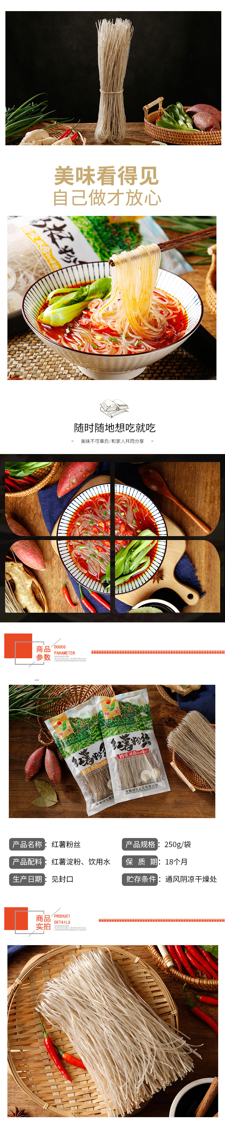 【2斤装】农家传统自制红薯粉丝、正宗红薯粉条、4包装细粉丝、250g/包