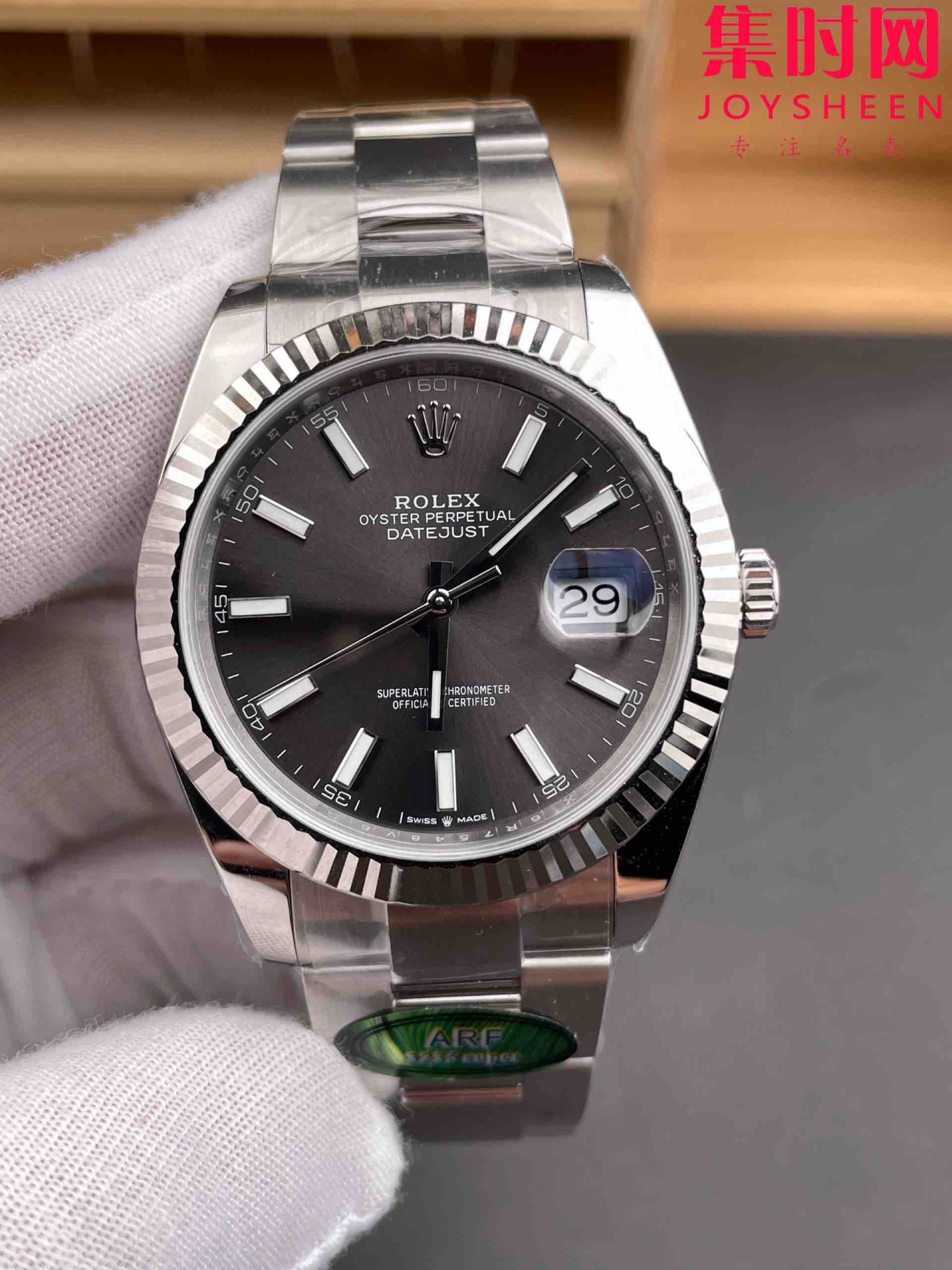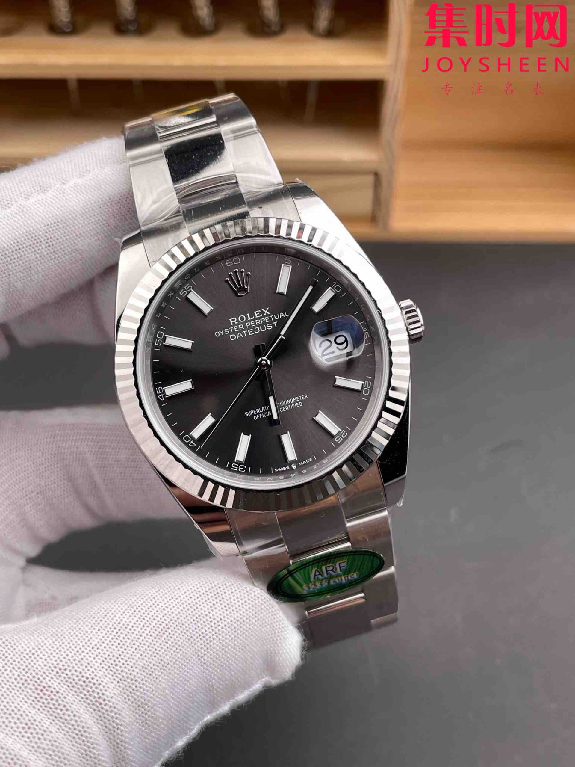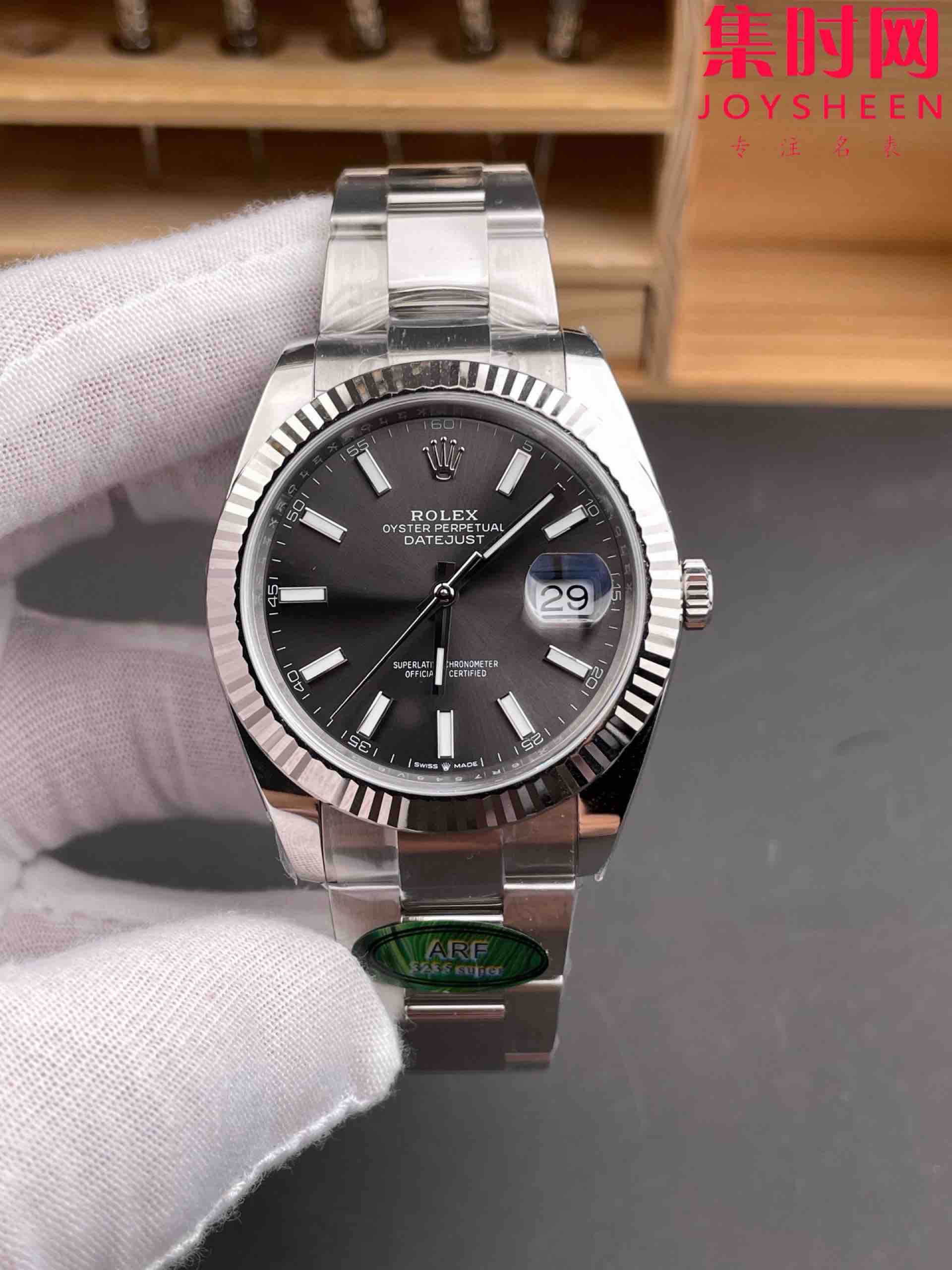 ARF劳力士日志型41mm 水泥灰 灰盘 丹东3235机 板带 三珠链 904L钢 男士腕表