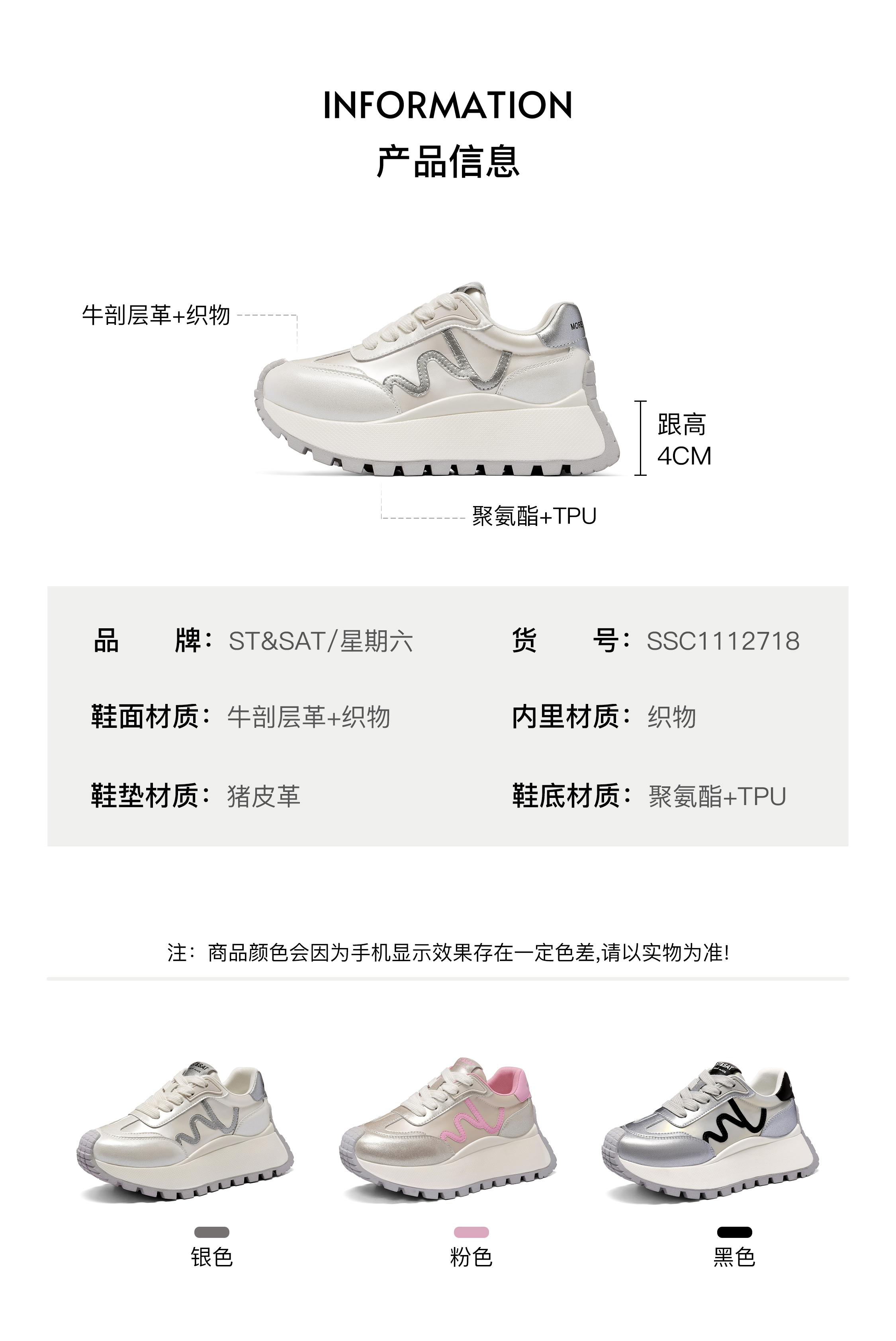 星期六潮酷厚底小白鞋高跟老爹鞋SS33112136