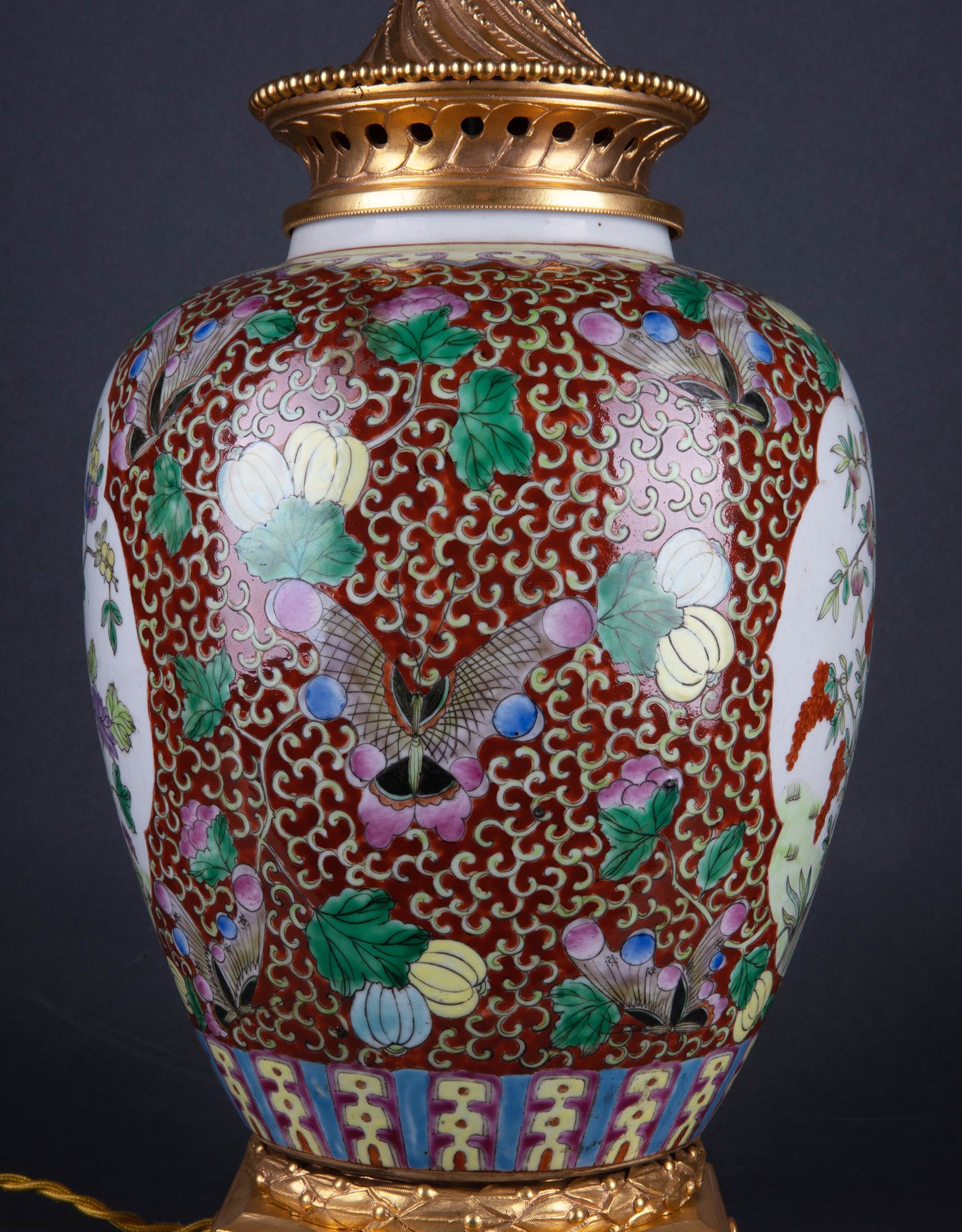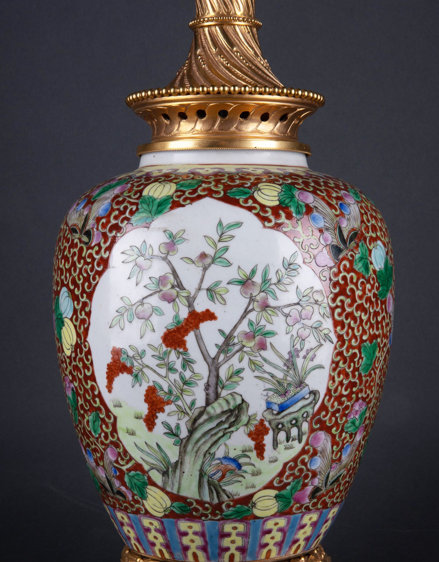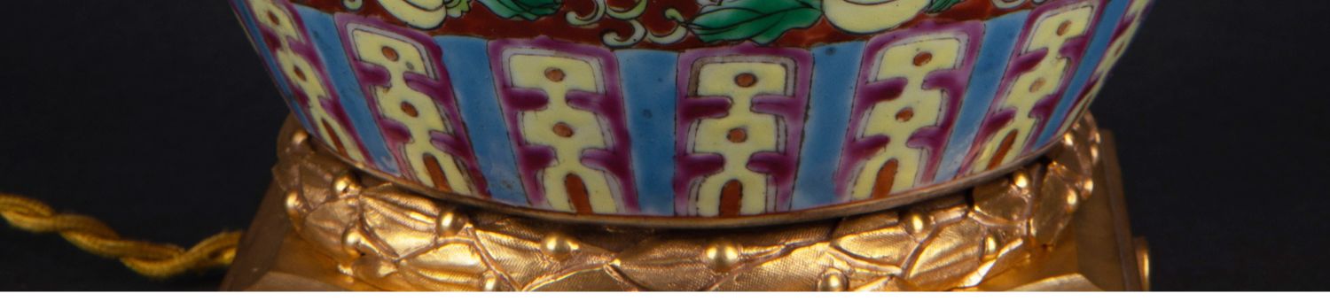 独角鹿西洋古董摆件东方风格粉彩传统花果铜鎏金饰瓷瓶台灯