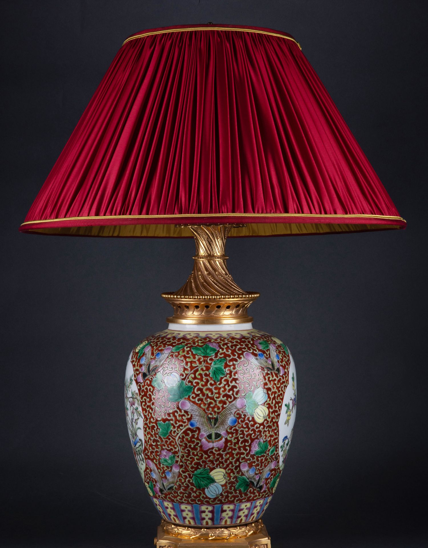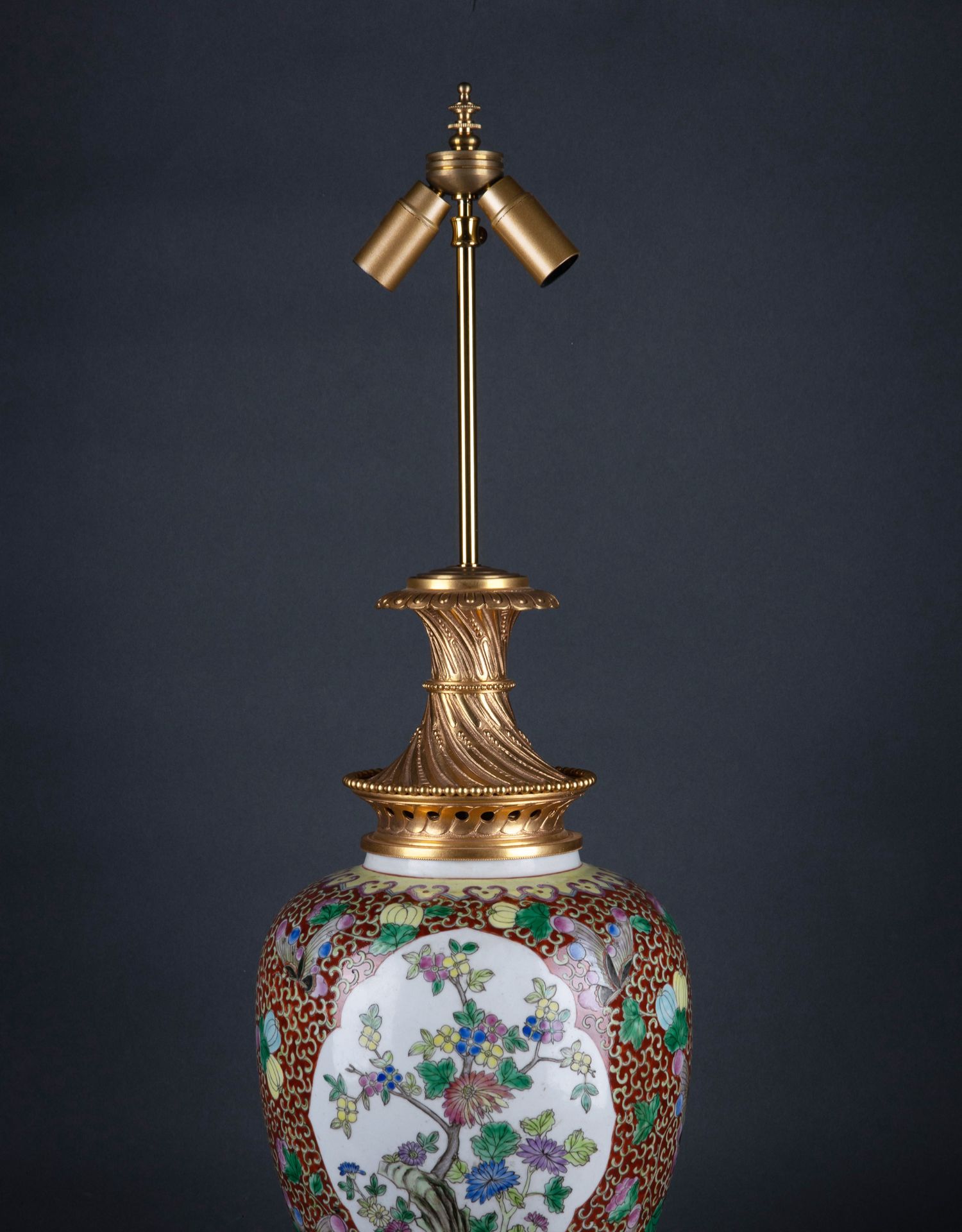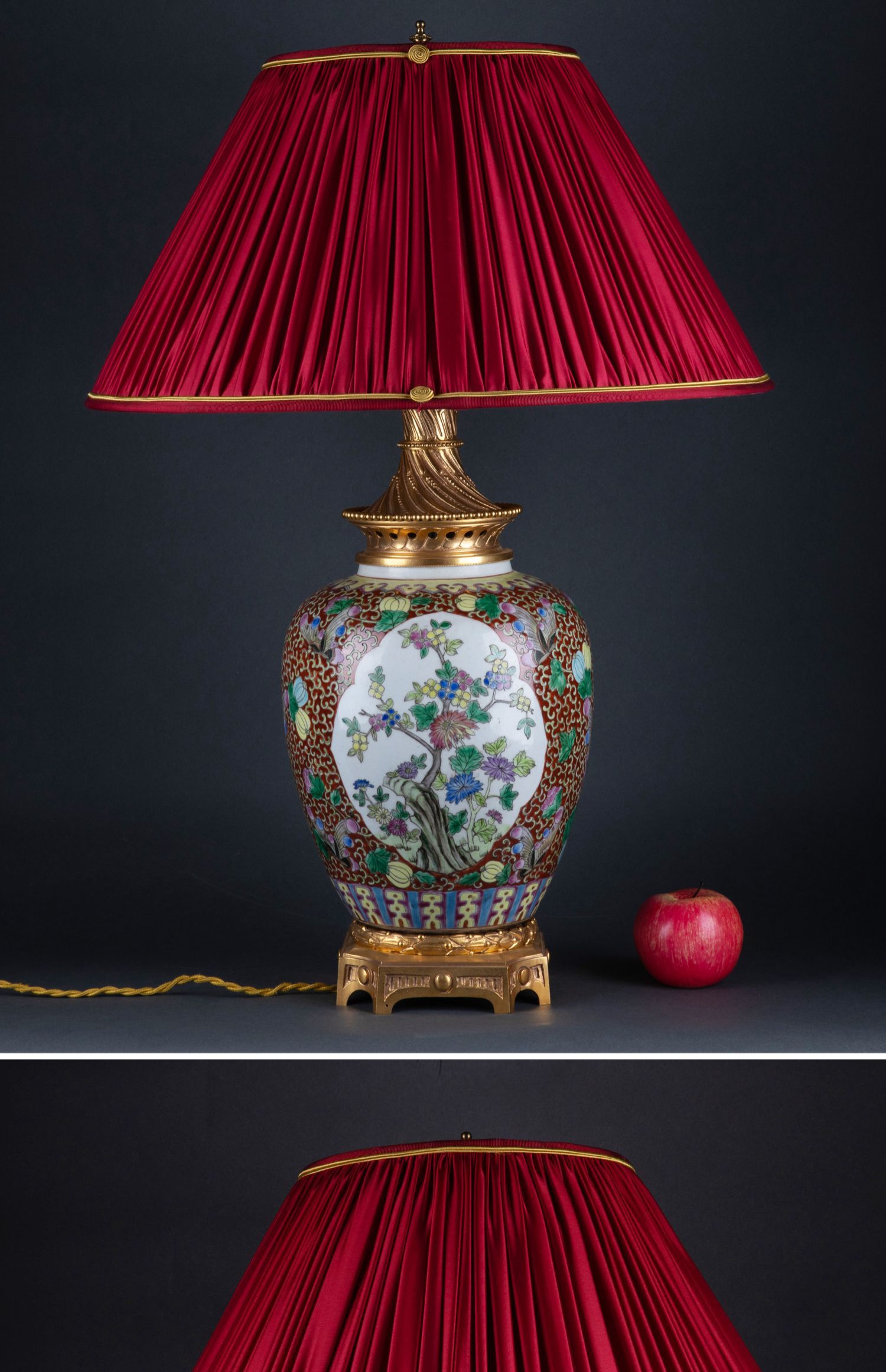 独角鹿西洋古董摆件东方风格粉彩传统花果铜鎏金饰瓷瓶台灯