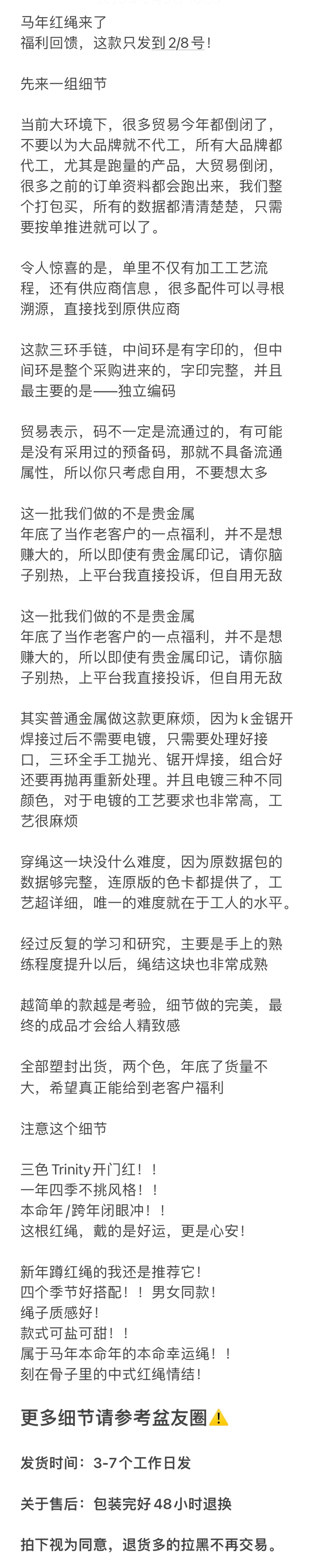 福利款 三色Trinity红绳 开门红 新年红绳手链