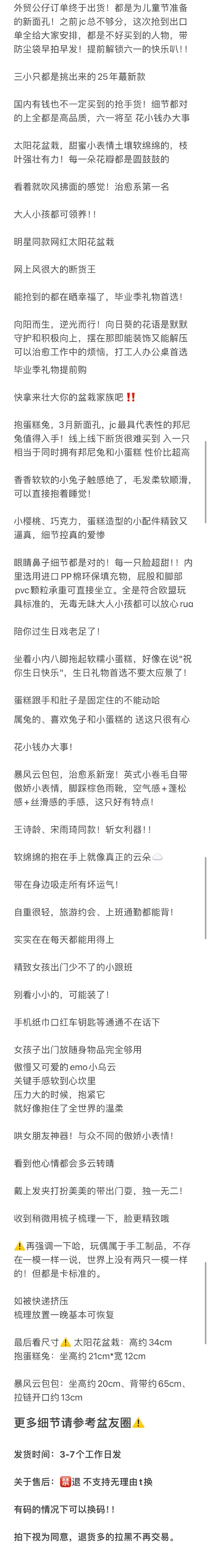 六一限定 JC25新款公仔 太阳花盆栽/抱蛋糕兔/暴风云包包 大儿童的精神食粮,礼物首选