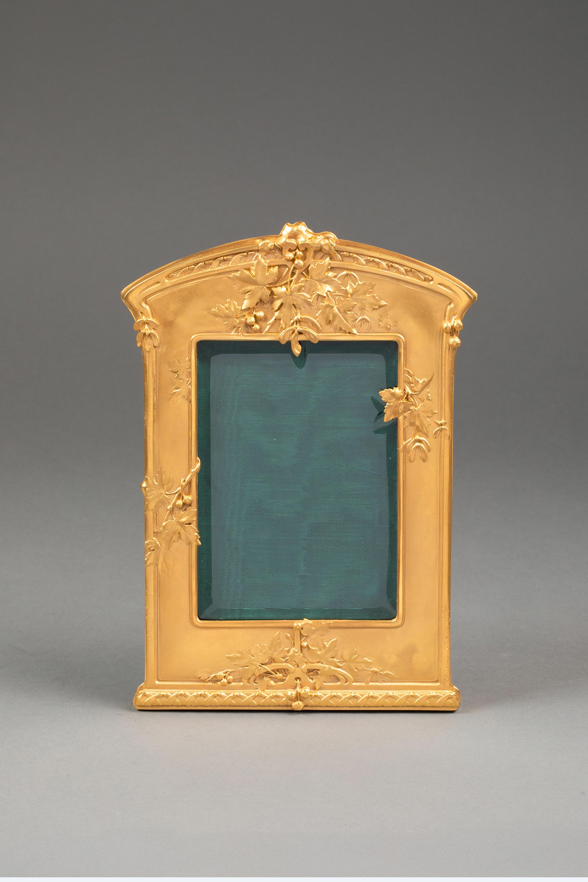 19世纪末法国出品新艺术风格葡萄藤叶主题铜鎏金精雕装饰绿色绒衬相框