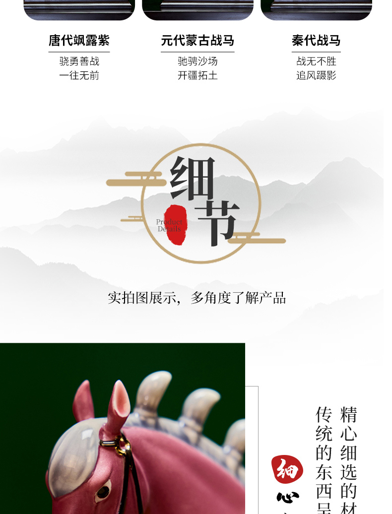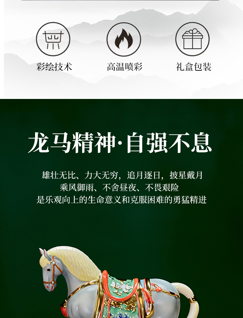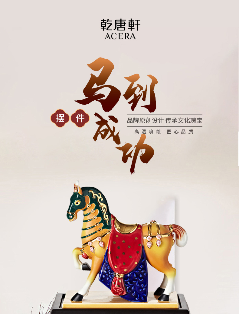 【马系列摆件】乾唐彩 中国风工艺礼品摆件盛世宝马系列 8寸