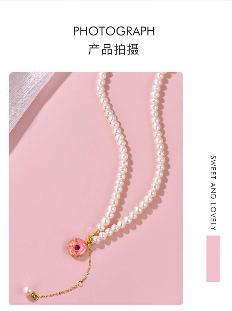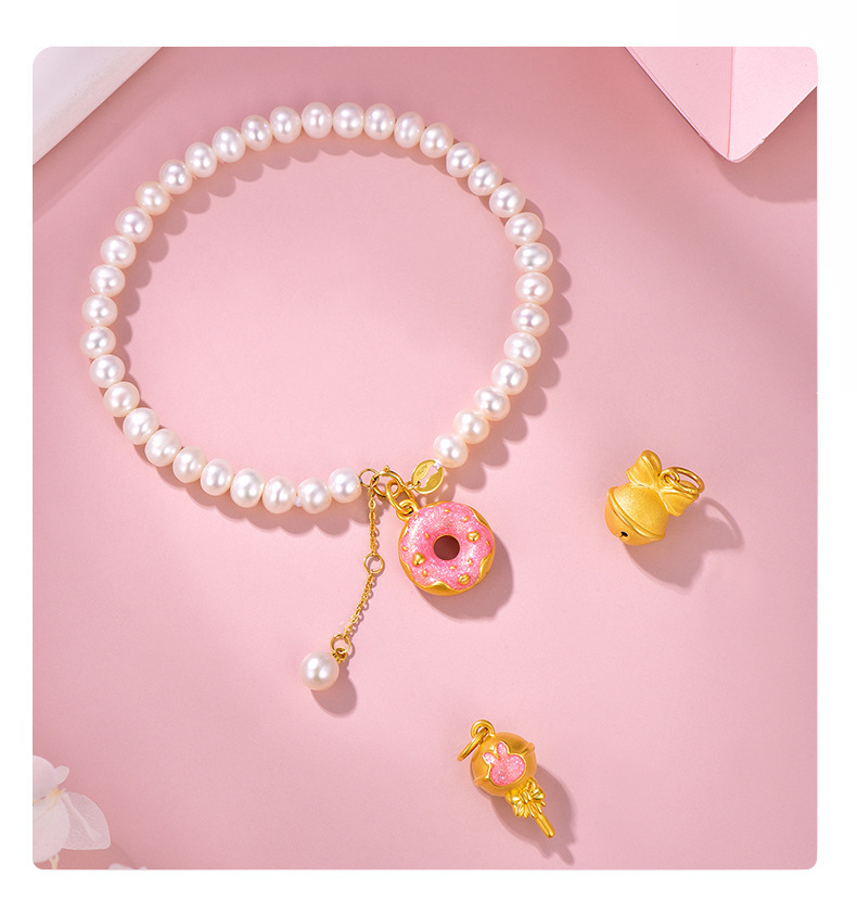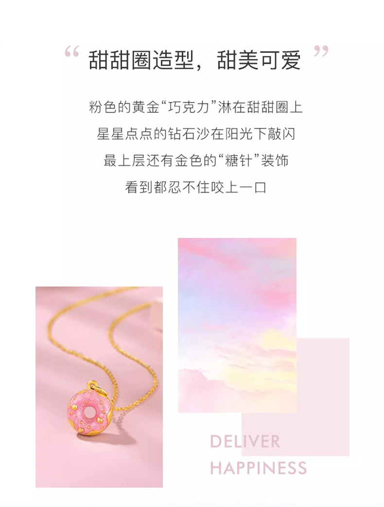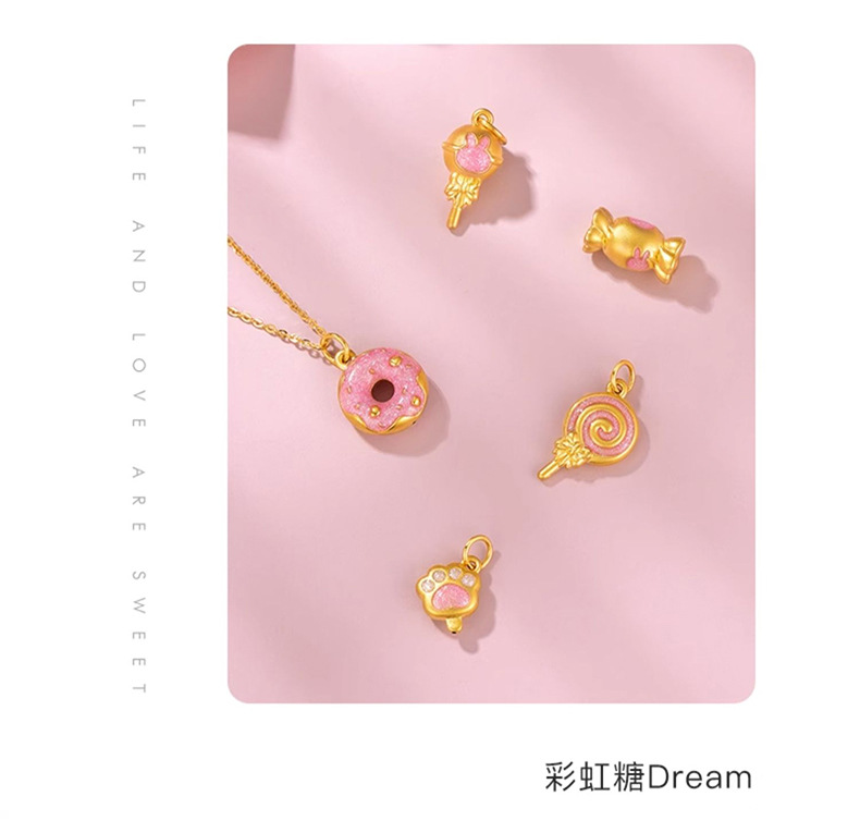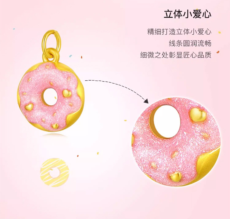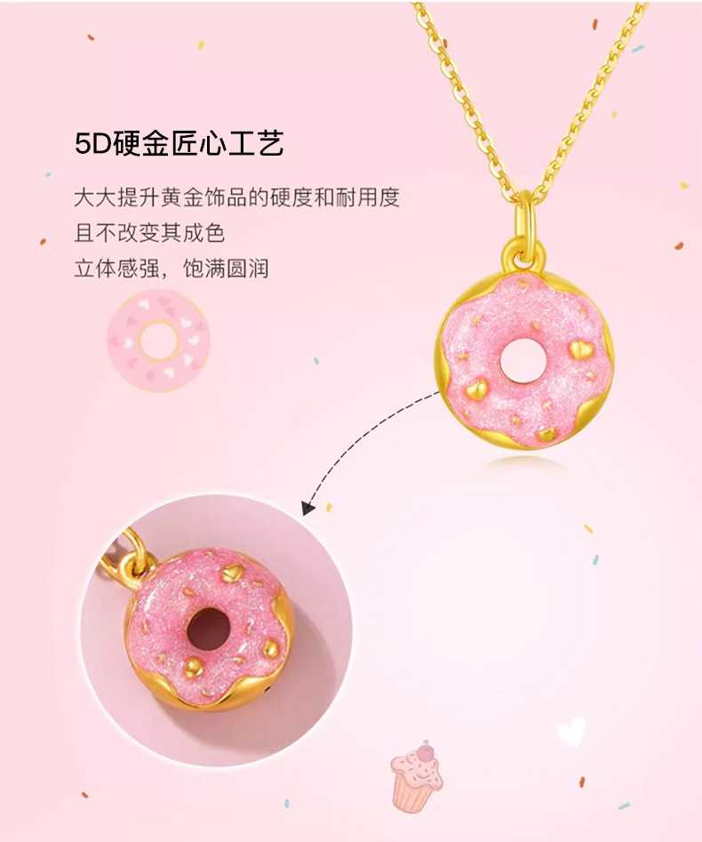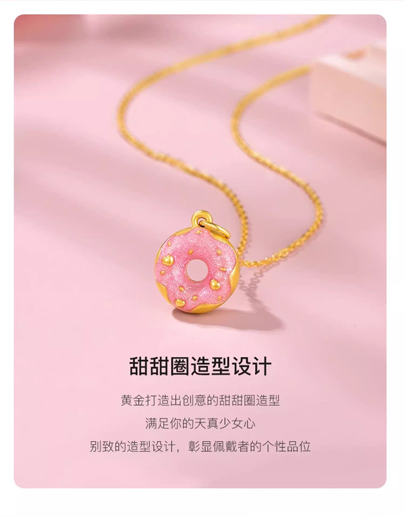 七夕情人节礼物【甜甜圈造型!甜美可爱】999足金包银项链女黄金色珐琅桃心甜甜圈吊坠轻奢小众送女友礼物,既可当精美项链,也可做手链配戴 开启属于自己的甜蜜。ry