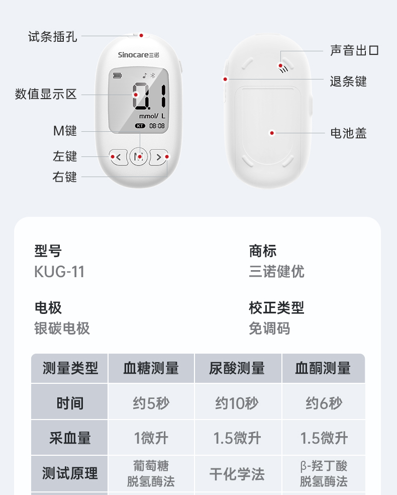 【粉丝专享】三诺血酮检测酮体生酮尿酮家用精准健身减脂精准测酮测试纸KUG-11