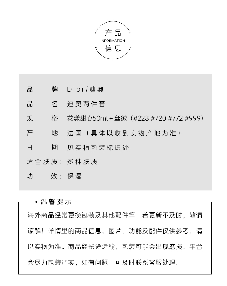 迪奥香水口红两件礼盒 花漾甜心50ml+丝绒口红(228-720-772-999 号 四选一) 带礼盒手提袋