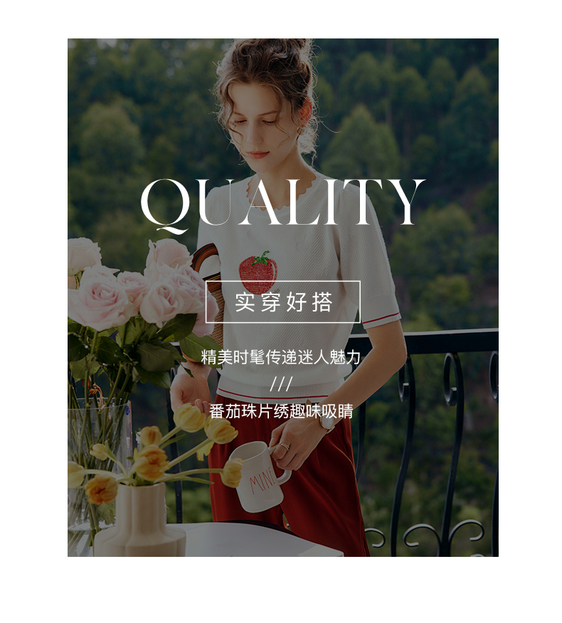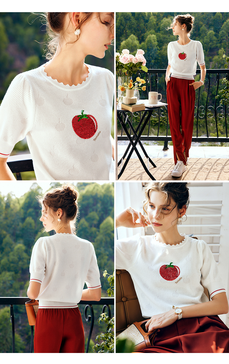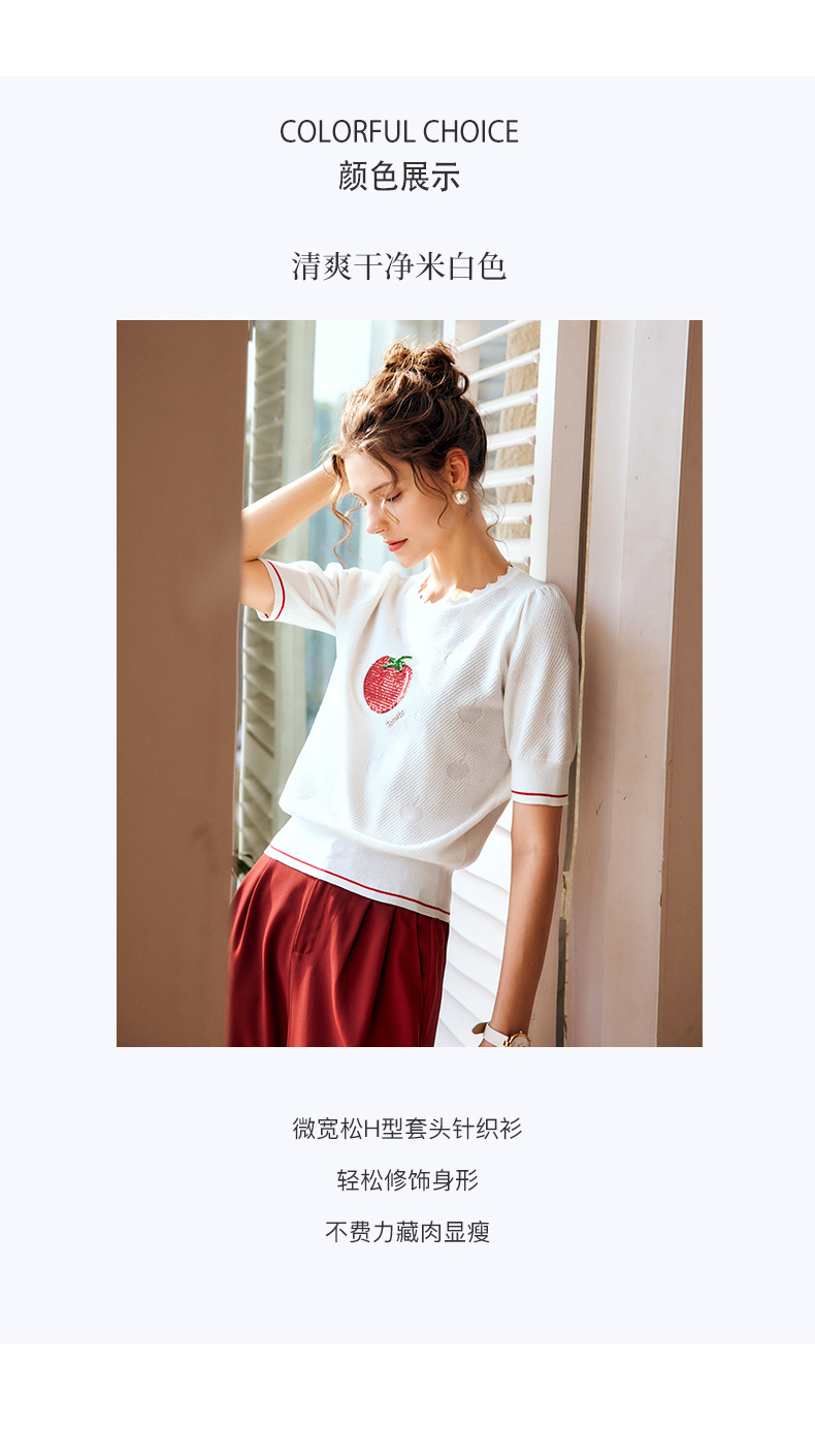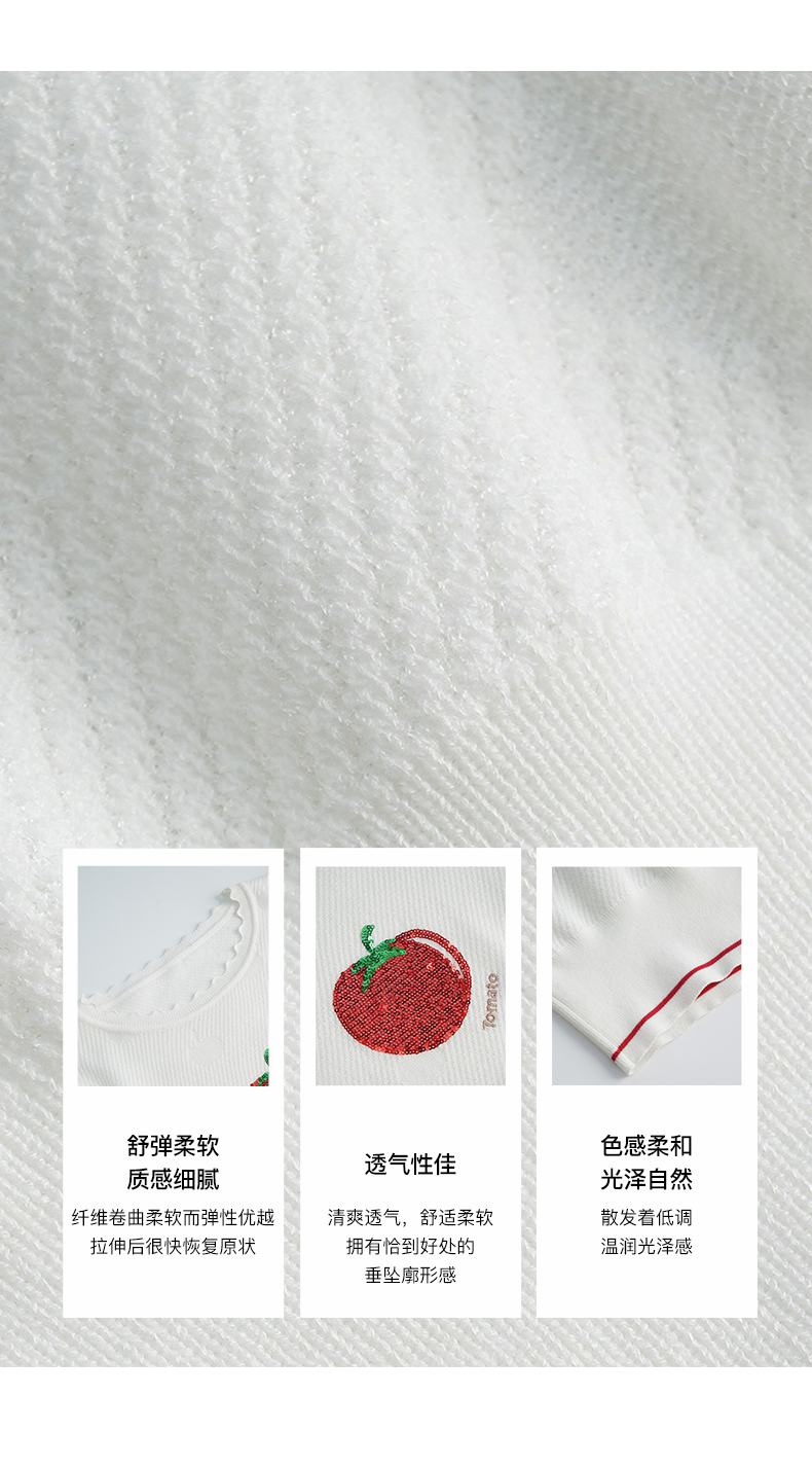 OLrain法式白色针织衫女夏季2022年新款珠片刺绣欧根纱冰丝套头衫