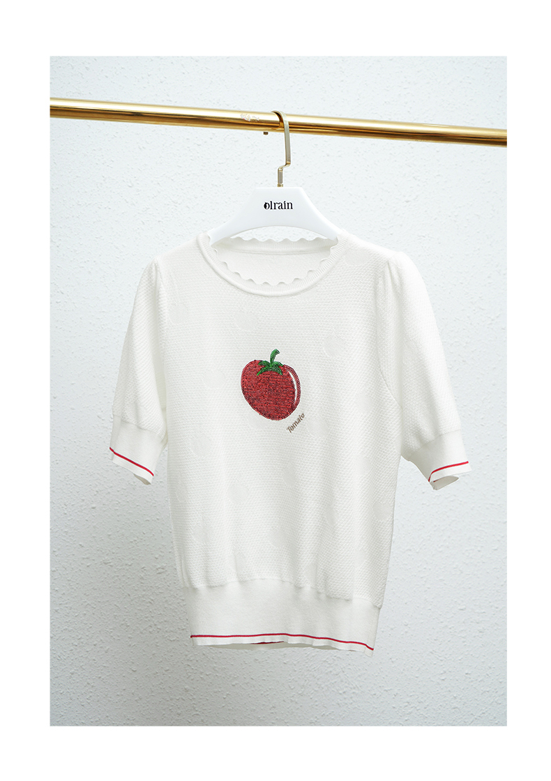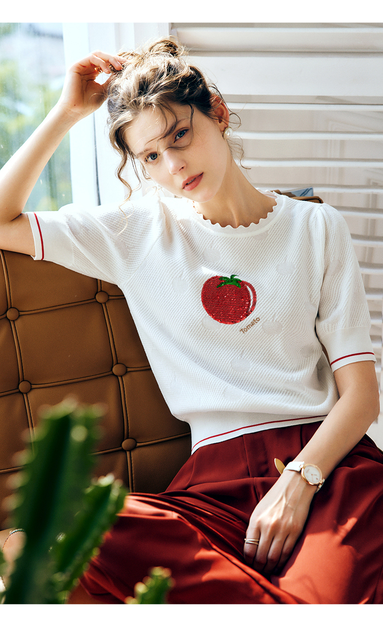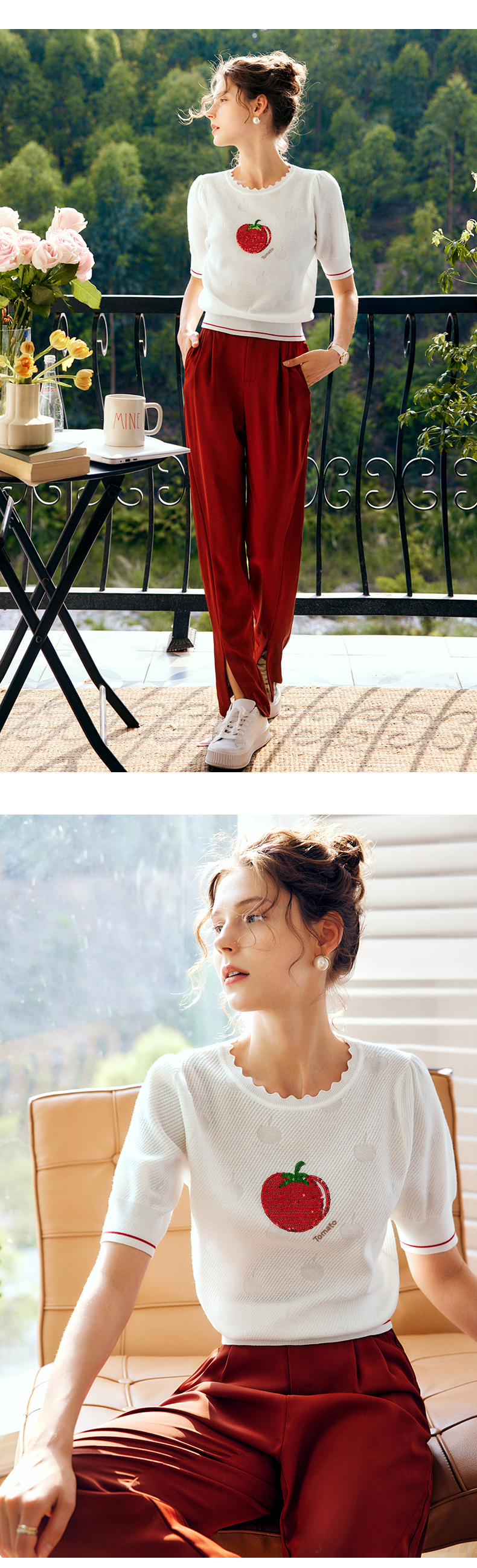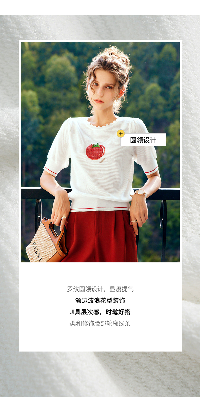 OLrain法式白色针织衫女夏季2022年新款珠片刺绣欧根纱冰丝套头衫