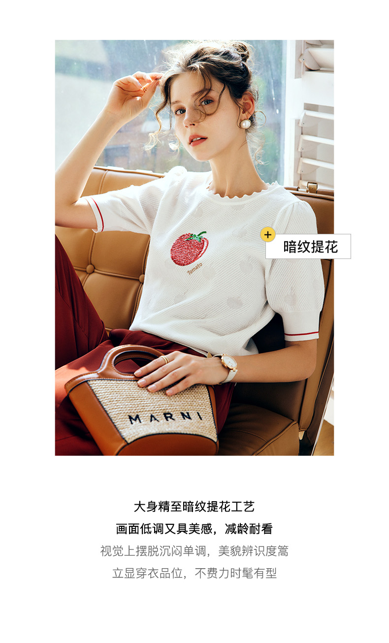 OLrain欧芮儿法式短袖T恤女夏季2023年新款宽松时尚刺绣薄款上衣