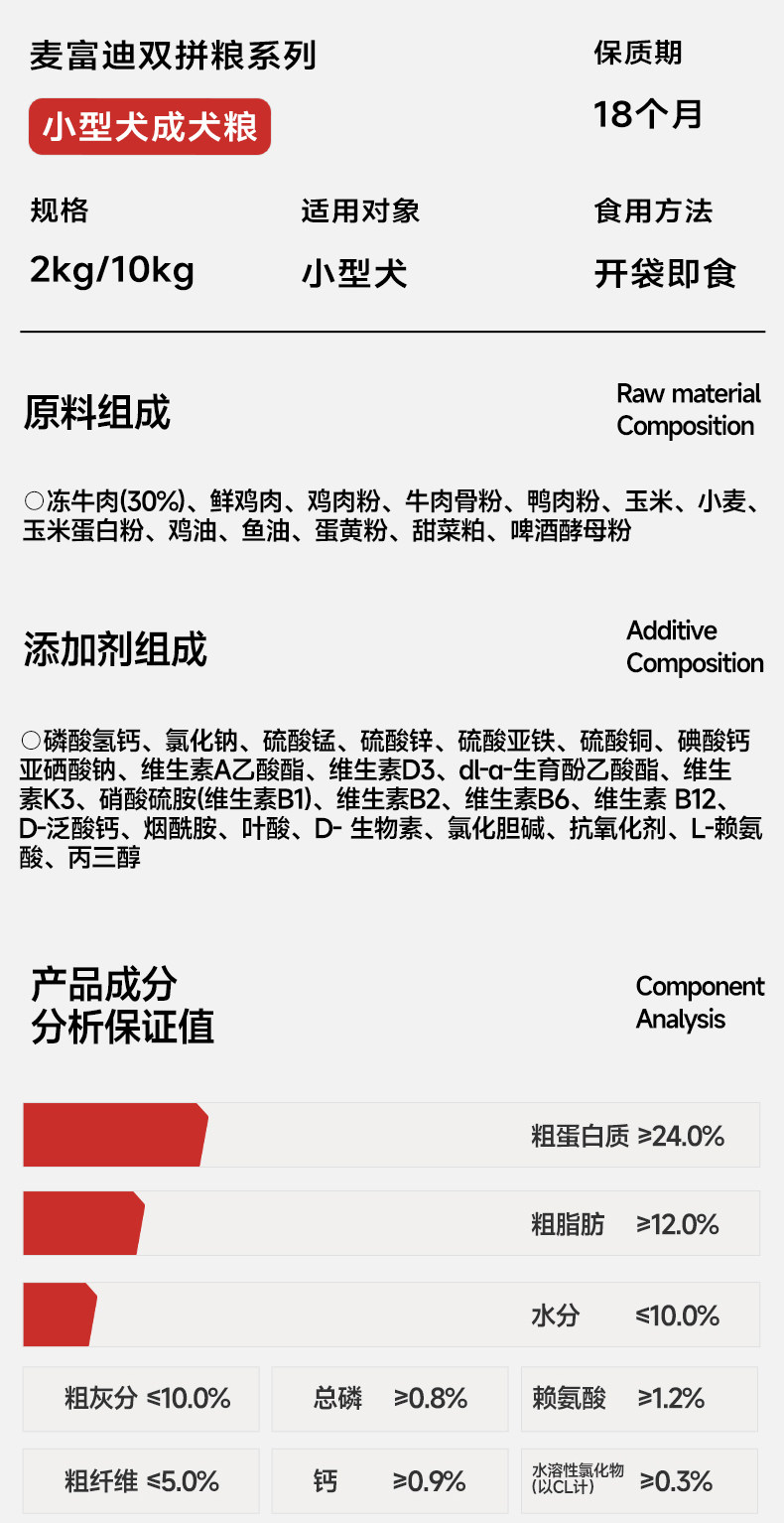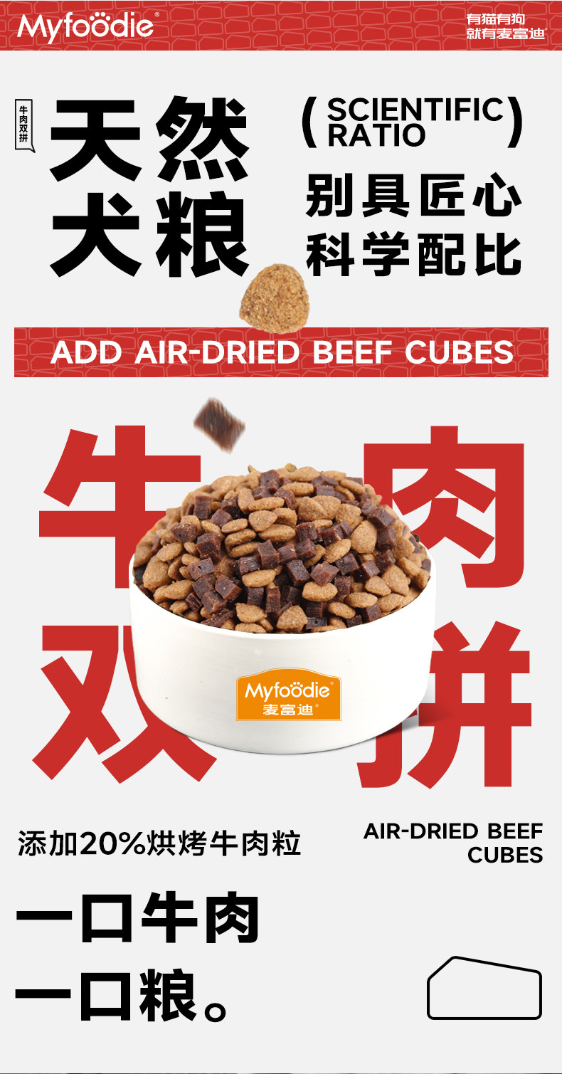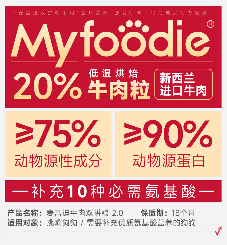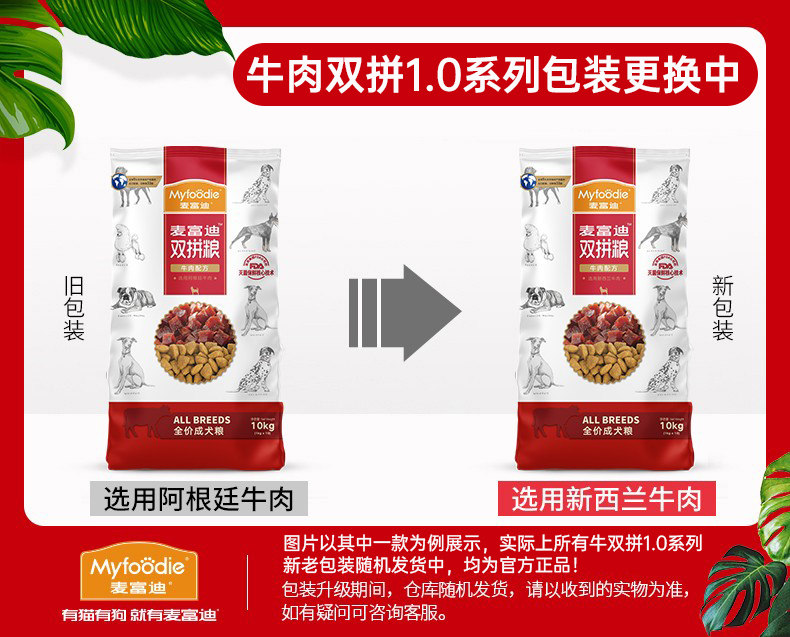 麦富迪狗粮牛肉双拼粮10kg金毛泰迪大型小型犬通用型成犬狗粮20斤