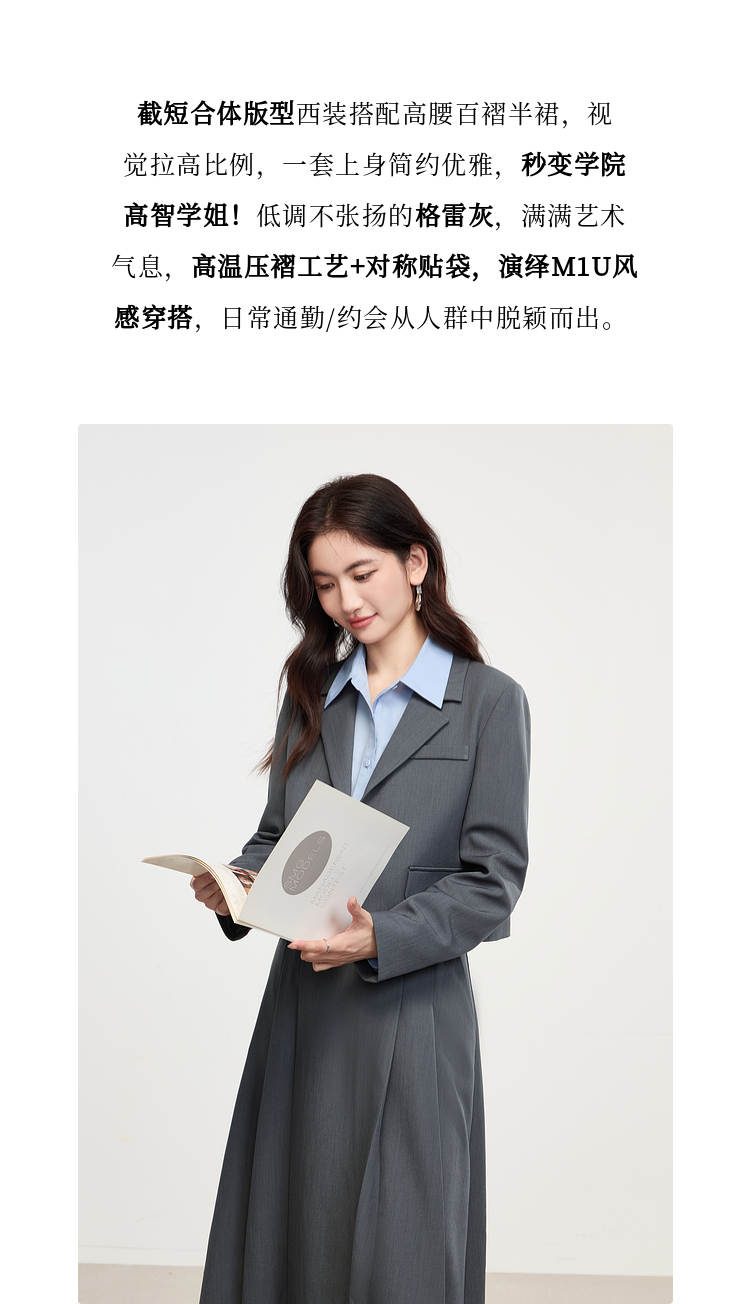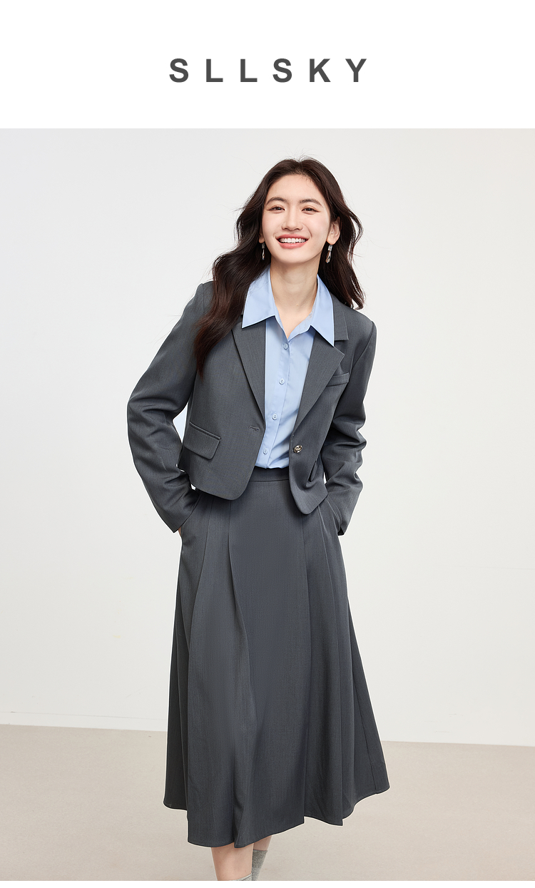 【 1件75折】熙世界25春季新款职场教资正装休闲西装半身裙西服外套两件套装